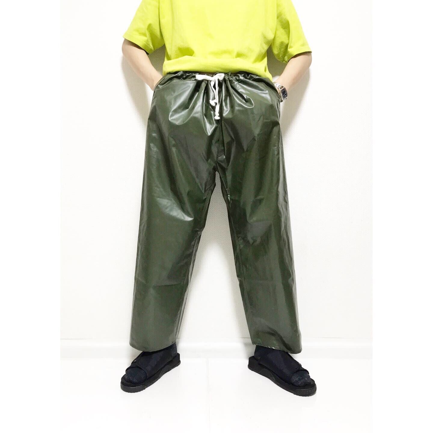 dead stock French army rubber coating wide silhouette pants