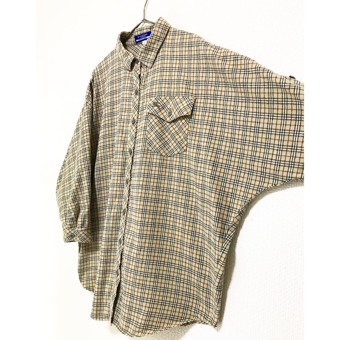 1990'sバーバリーブルーレーベルから ノバチェックコットンドルマンスリーブシャツ