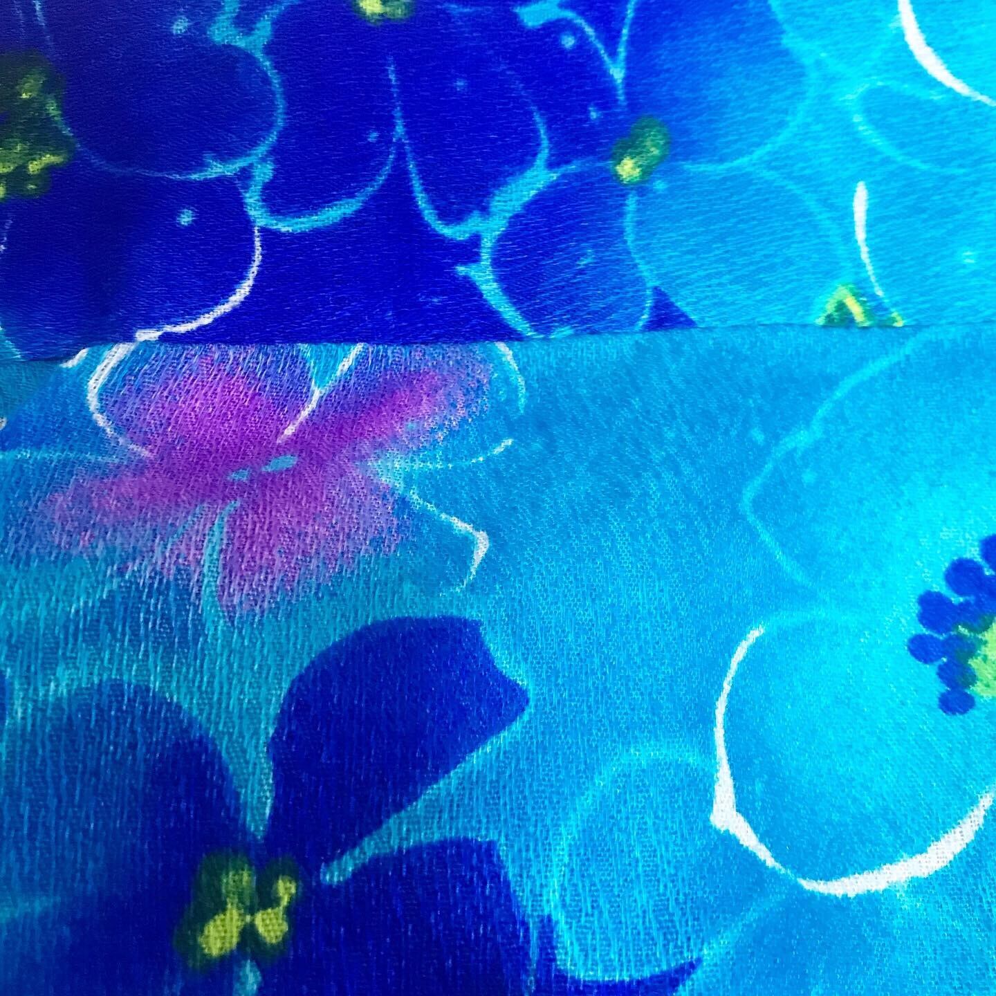 ブルー系の色味が入り混じった花柄パターン メタルボタンが良く映えます
