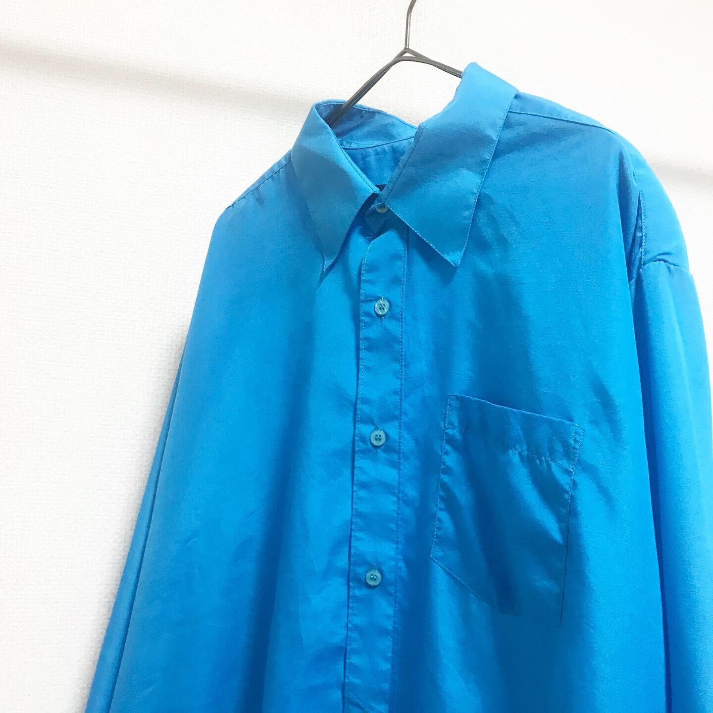 目の覚める様なターコイズブルー ディテールはビジネスシャツライクですが色味 オーバーサイズと言った点で良い感じに気崩せるかと