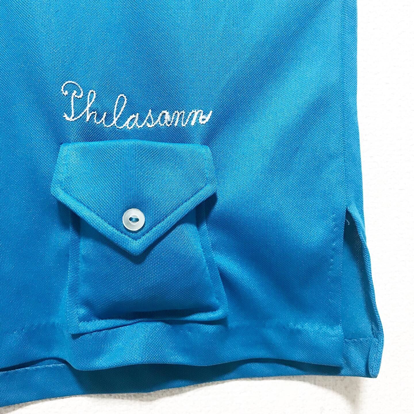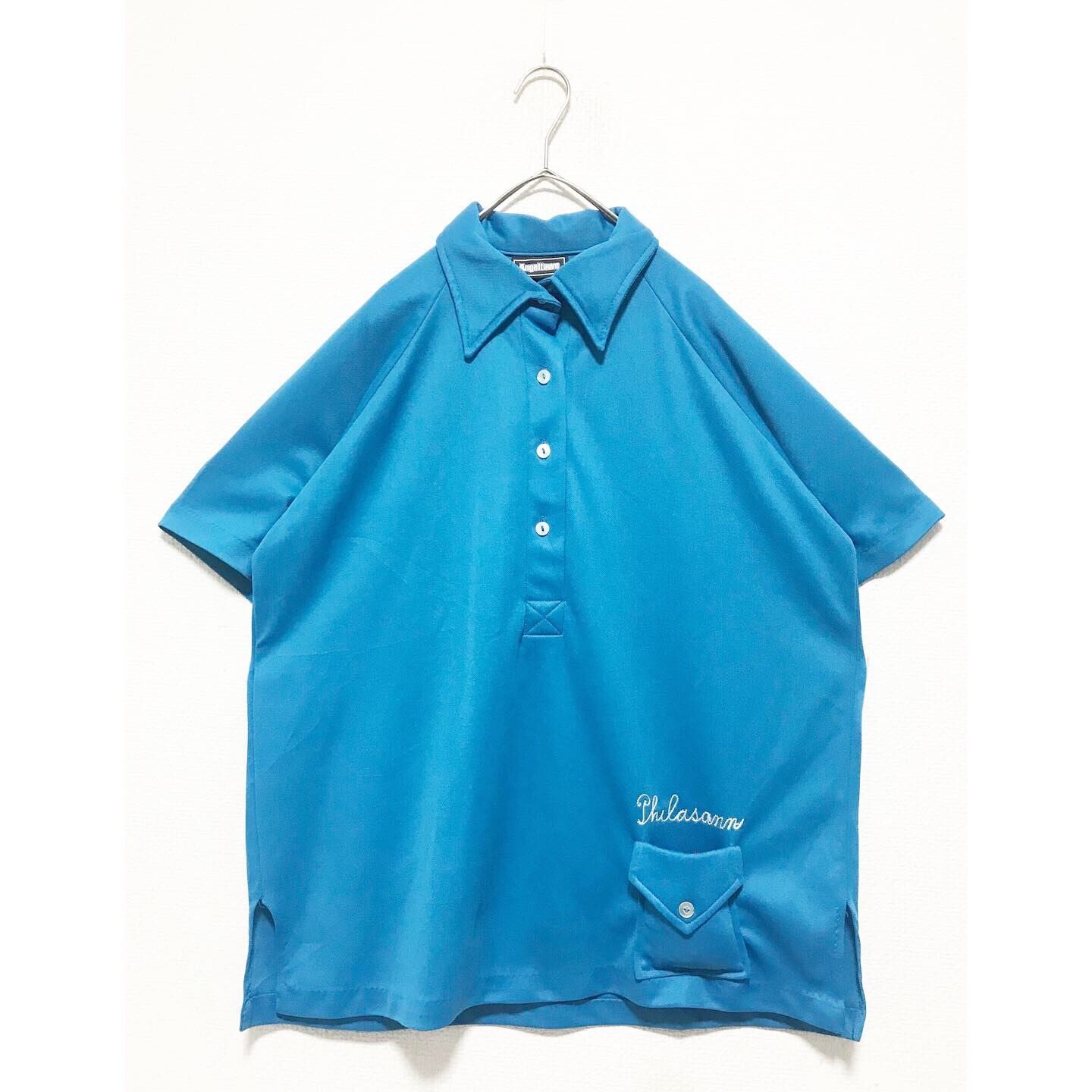 1990's オハイオ刺繍ターコイズブルーデザインポロシャツ
