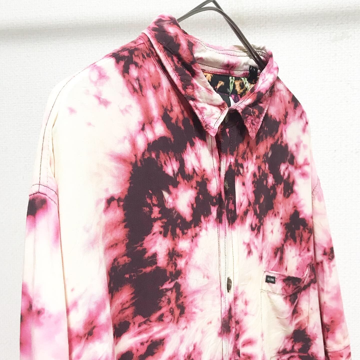 1990's タイダイ染めレーヨンワインレッドシャツ