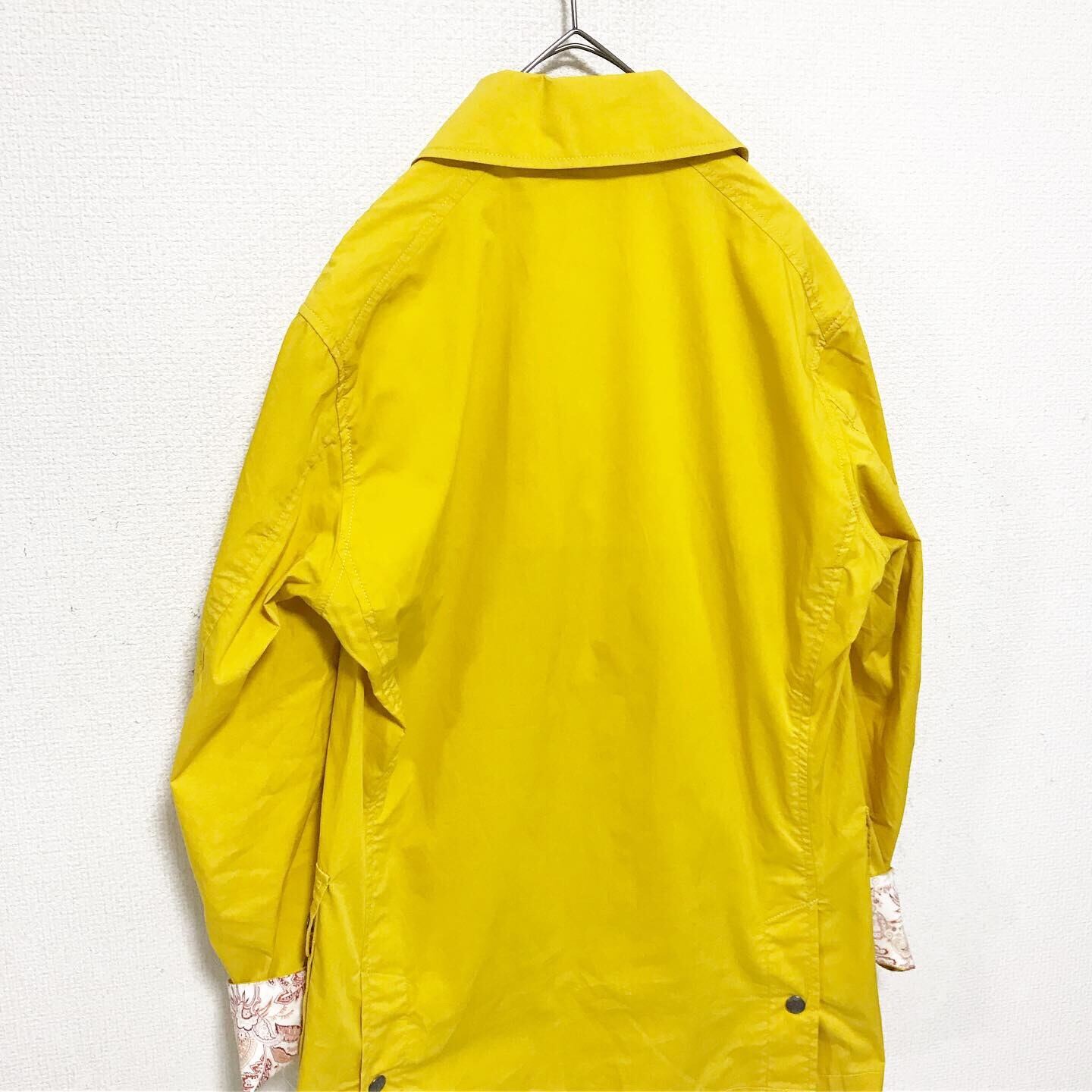 オールイエロー 袖を捲るとペイズリー地 襟を立てて留める事も出来ます