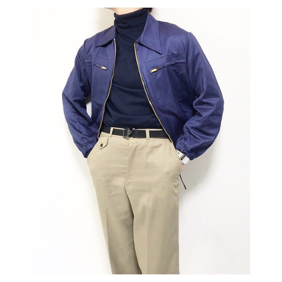 デッドストック特有のカチカチのコットン ネイビーにゴールドジップ