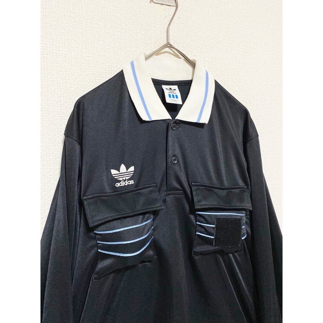 90s adidas black double pocket l/s polo shirt "DESCENTE made"