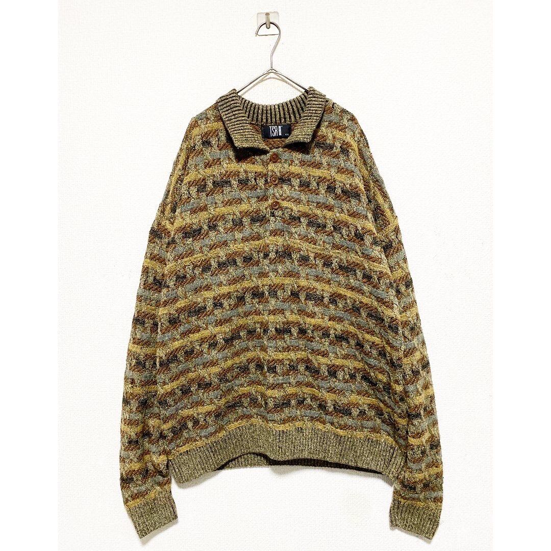 1980's usa製 ジャガード織総柄ロングスリーブニットポロシャツ