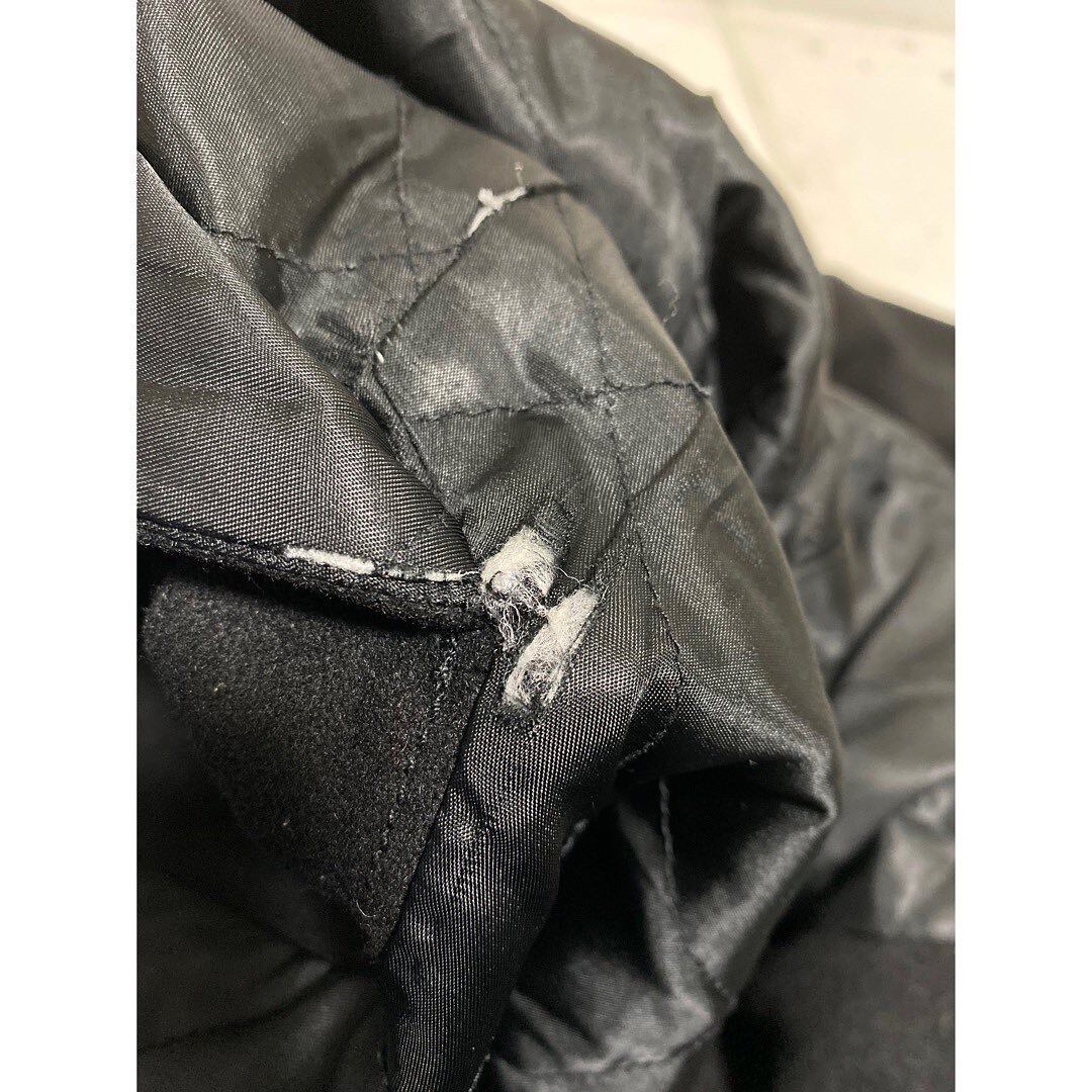 目の詰まったブラックメルトンウール スタンドカラー 前立てが前に出るオール比翼ボタン 中はキルティング