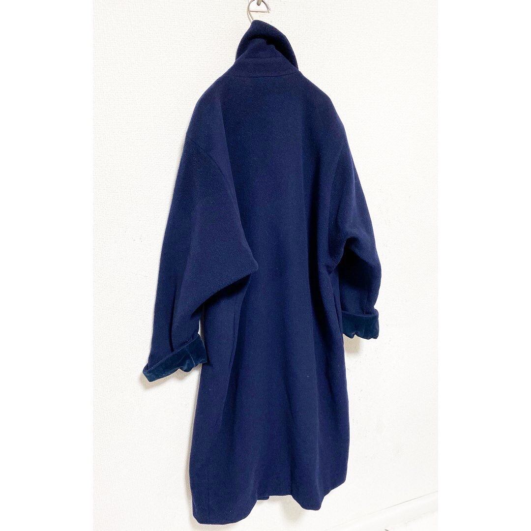 1990's ペリーエリスから ネイビーウールベロア切り替え変形ロングコート