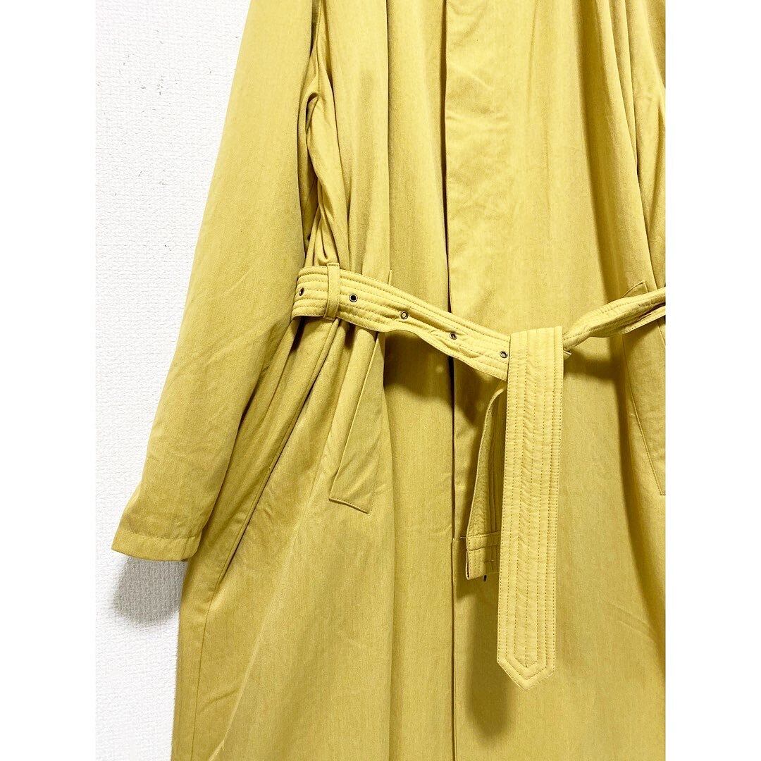 鮮やかなマスタードイエロー しっとり、トロトロとした肉厚ポリレーヨン ウエストベルト付き オーバーサイズ目な分、きゅっと絞ってシルエットに緩急をつけられます