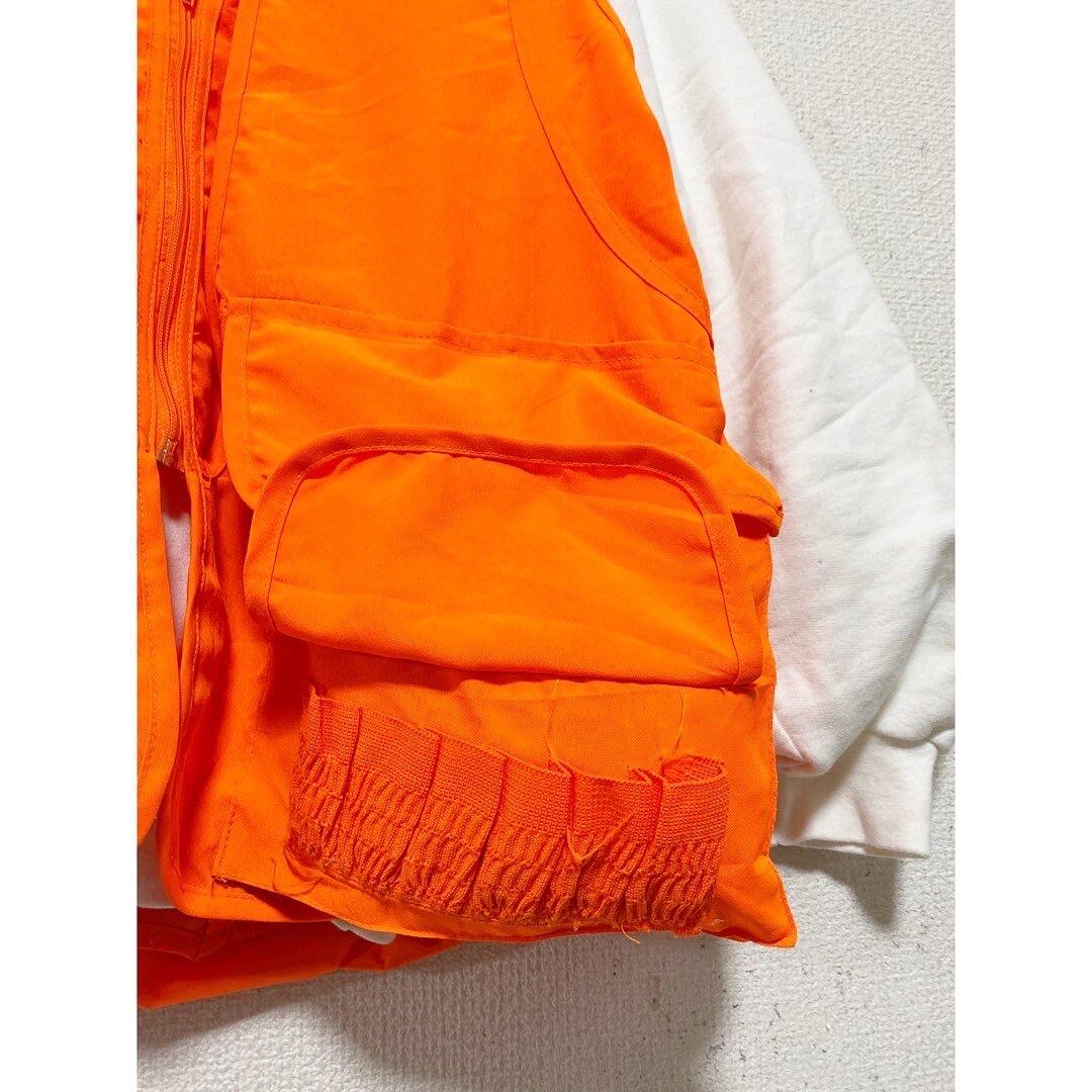目の覚める様なレスキューオレンジ 多重ポケット 弾薬入れ 立体感のある切り替え キルティング オーバーサイズ