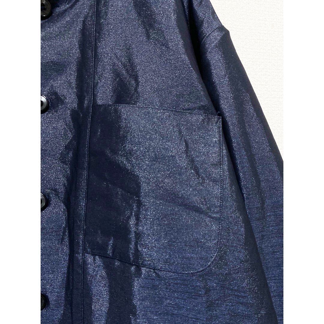 スタンドカラー ビッグポケットが胸に二つ サテン織の様な光の当たる角度によって色味が変わる、奥行きのあるダークネイビー どことなくカンフージャケットっぽい