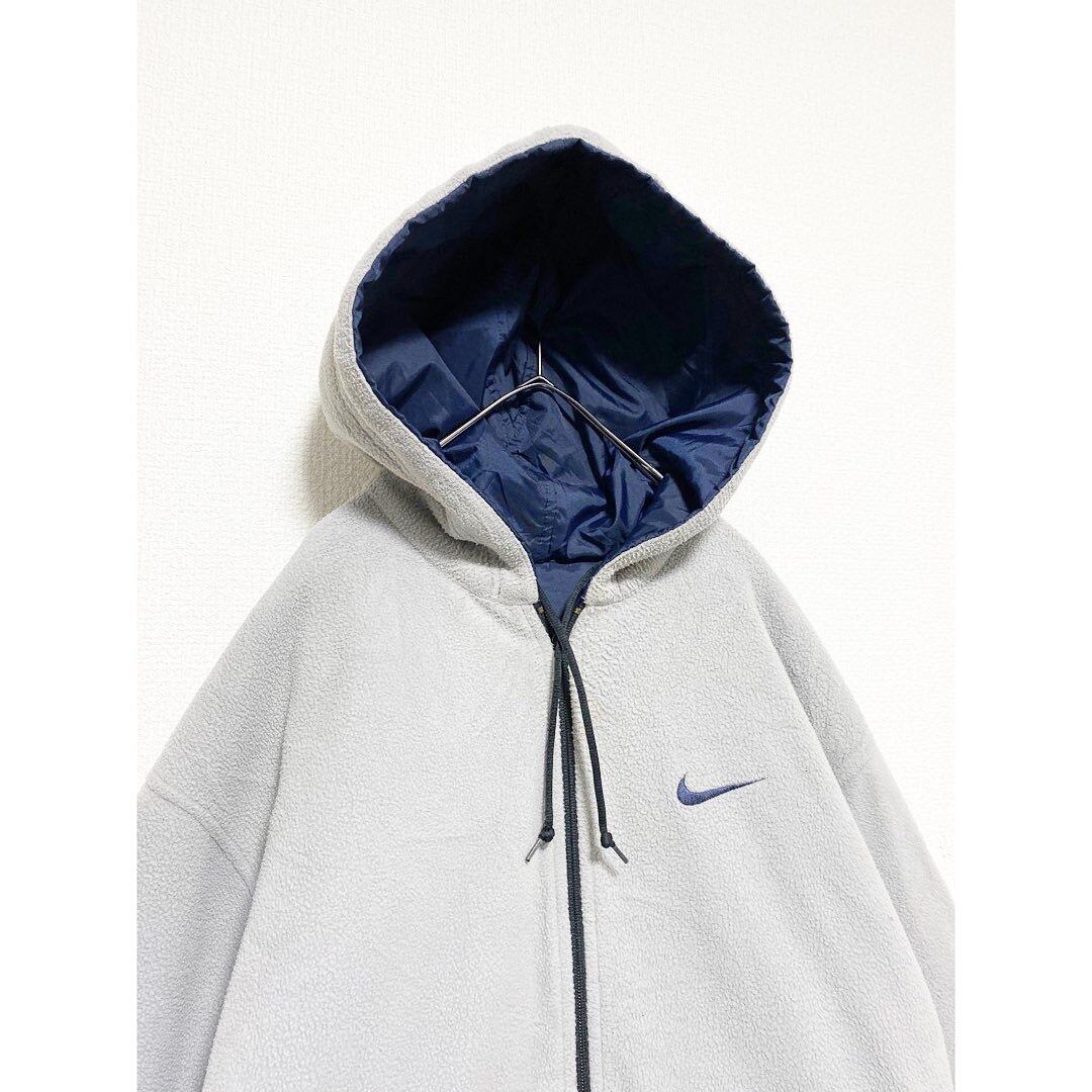1990's ナイキから ネイビーグレーリバーシブルロゴフード付きブルゾン