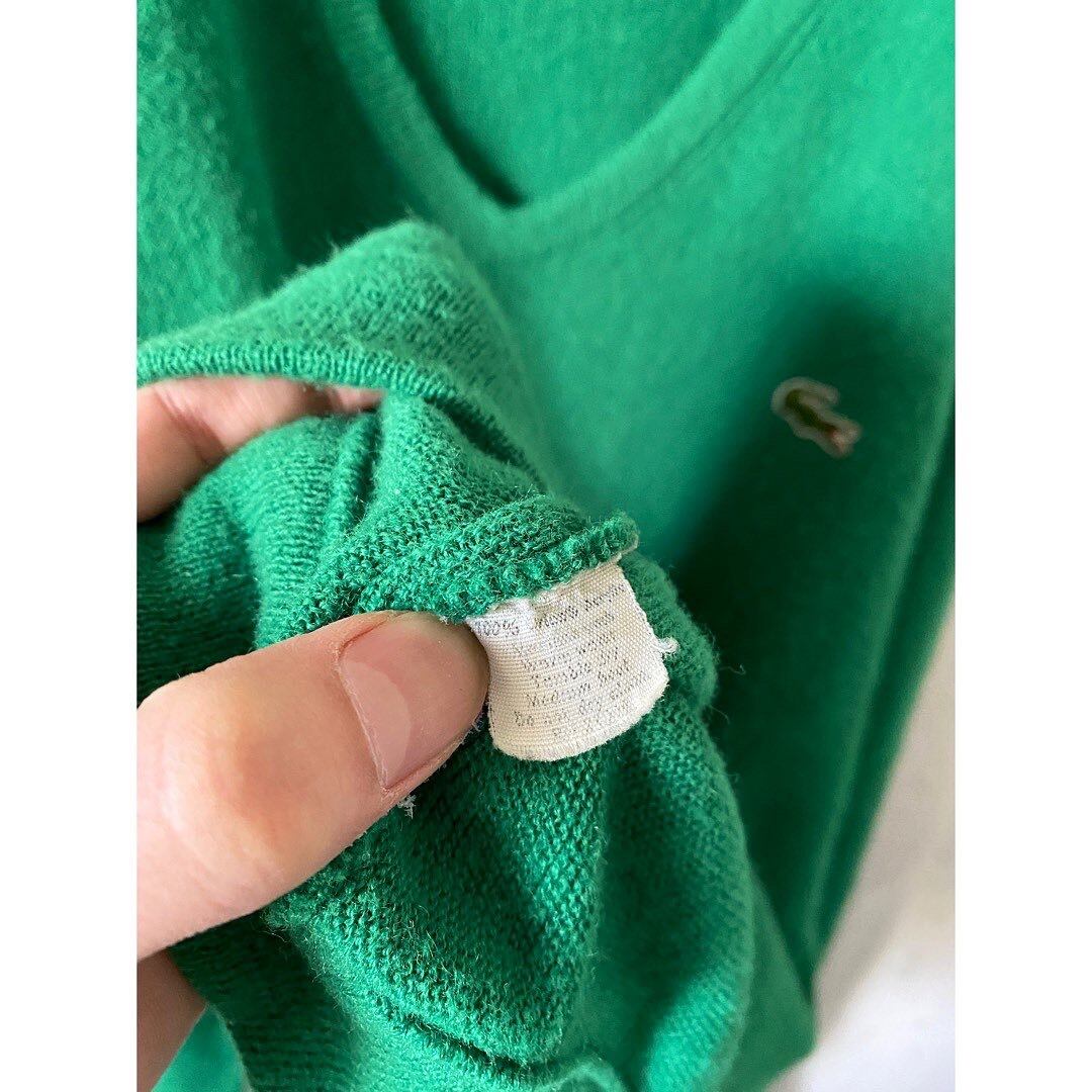 80s lacoste × izod kerry green v-neck acrylic knitting sweater