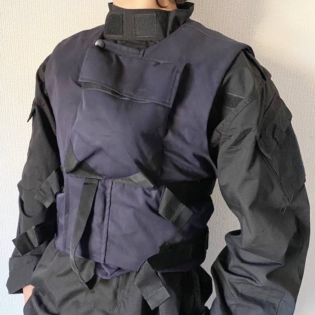 前後にあるマチ付き立体ポケットは鉄板を入れて、銃弾を防ぐ役割 サイドにアジャスター ネイビーパターンは中々出てきません