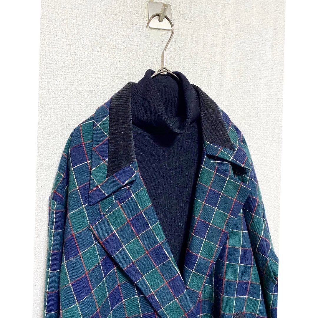 クラシカルなグリーン系のチェックパターン 所々の太畝コーデュロイの切り替え
