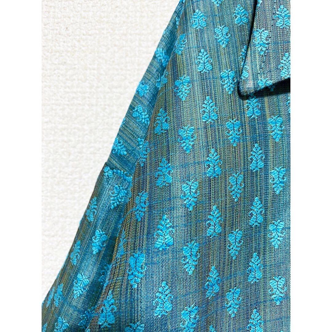 ヴィンテージ 総柄ターコイズブルーオープンカラーシャツ
