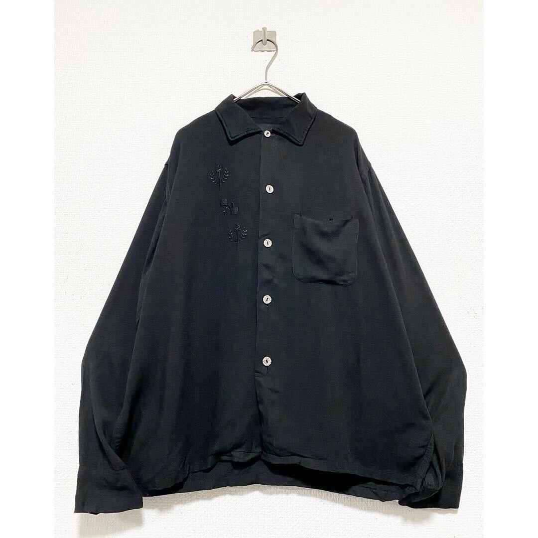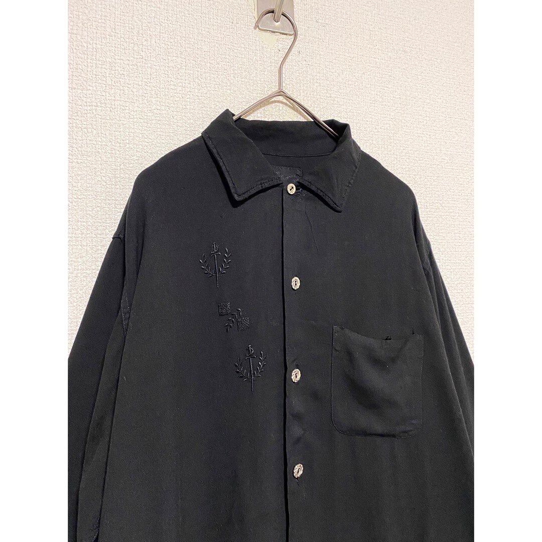 1950's〜1960's オーバーダイ刺繍ブラックレーヨンボックスシルエットシャツ