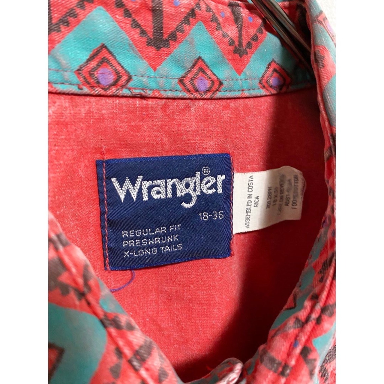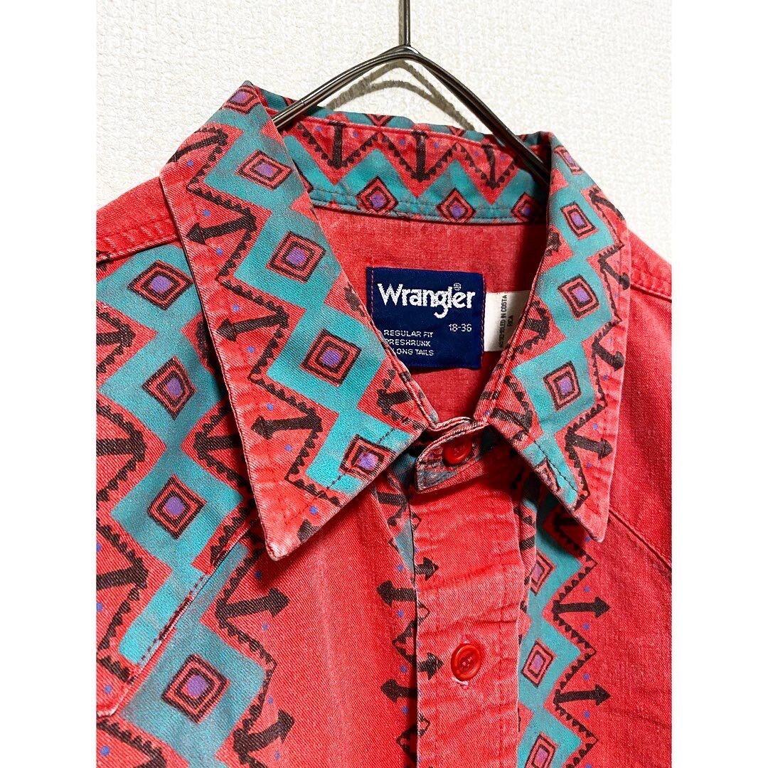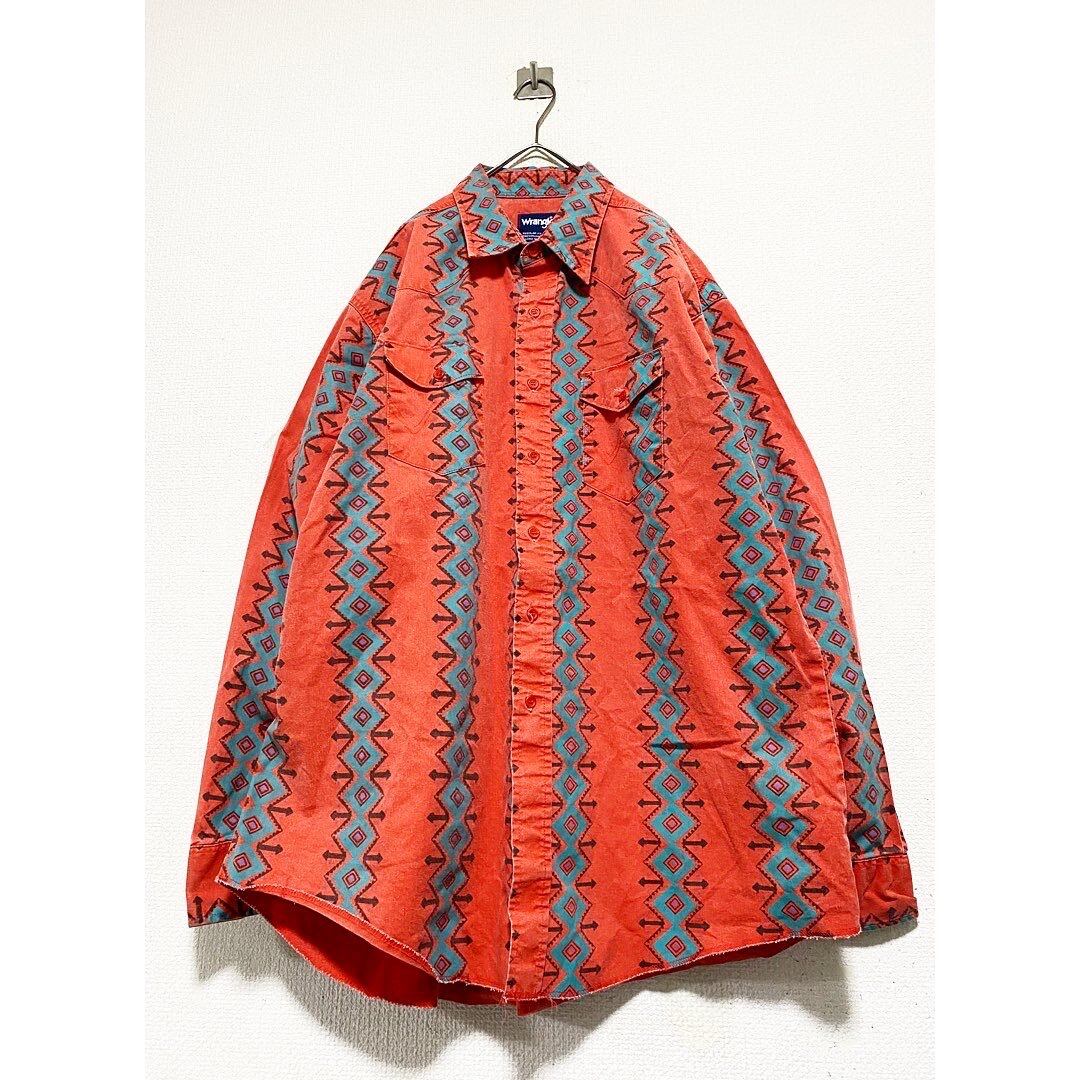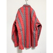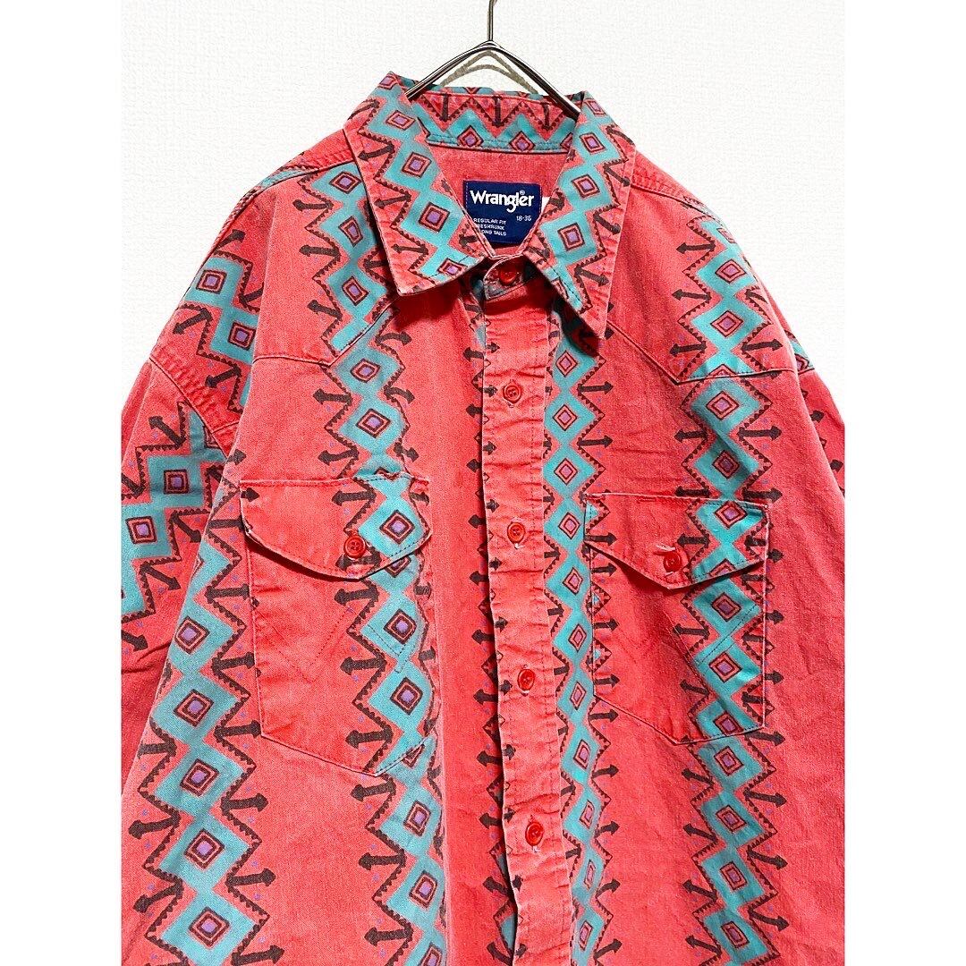 80s wrangler salmon pink native pattern cotton shirt "over size"