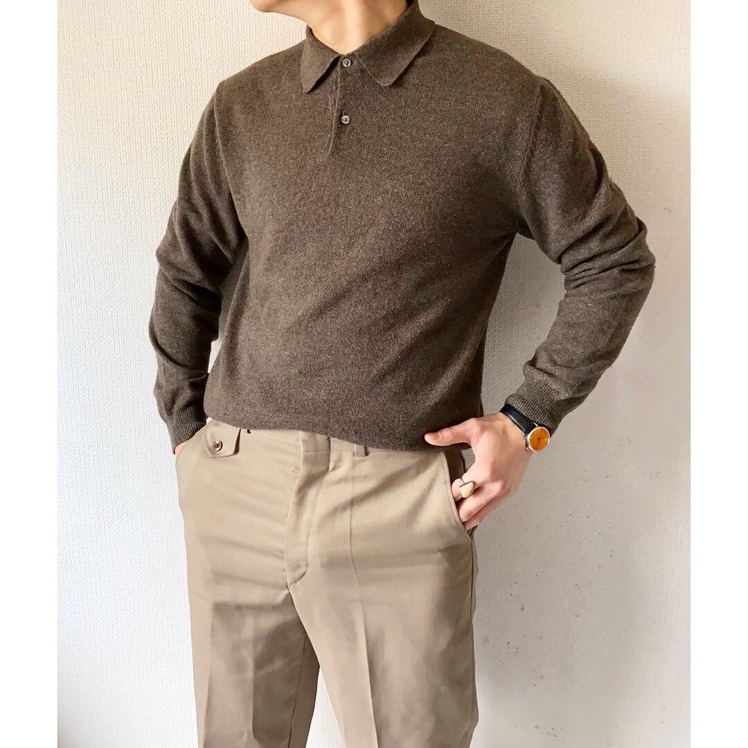 1990's マダガスカル製 カシミヤダークブラウンニットポロシャツ