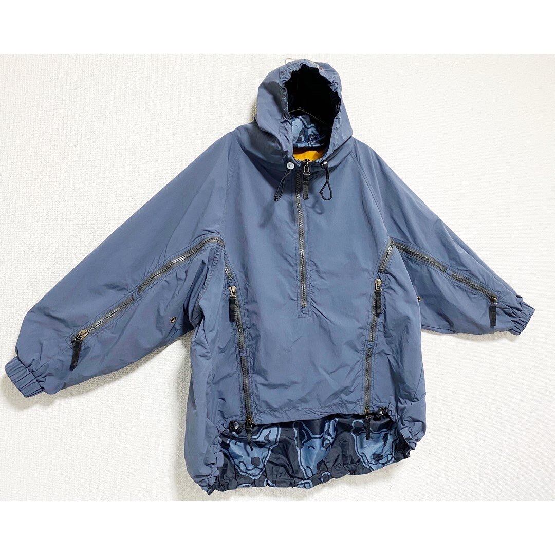 1990's 変型リバーシブルオーバーサイズジップソリッドグレーアノラックパーカー
