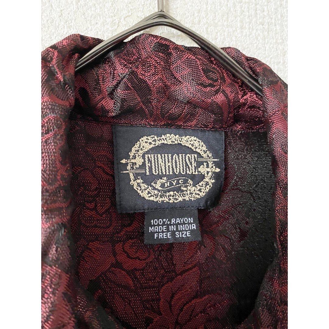 1990's レーヨンワインレッド総柄オーバーサイズシャツ