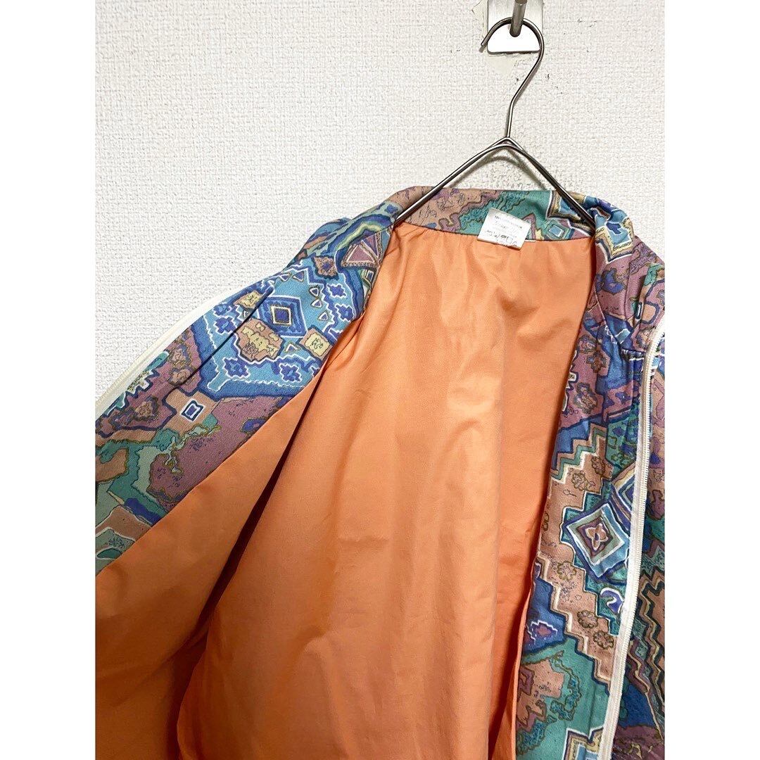 1990's 総柄コットンフルジップハイネックブルゾン