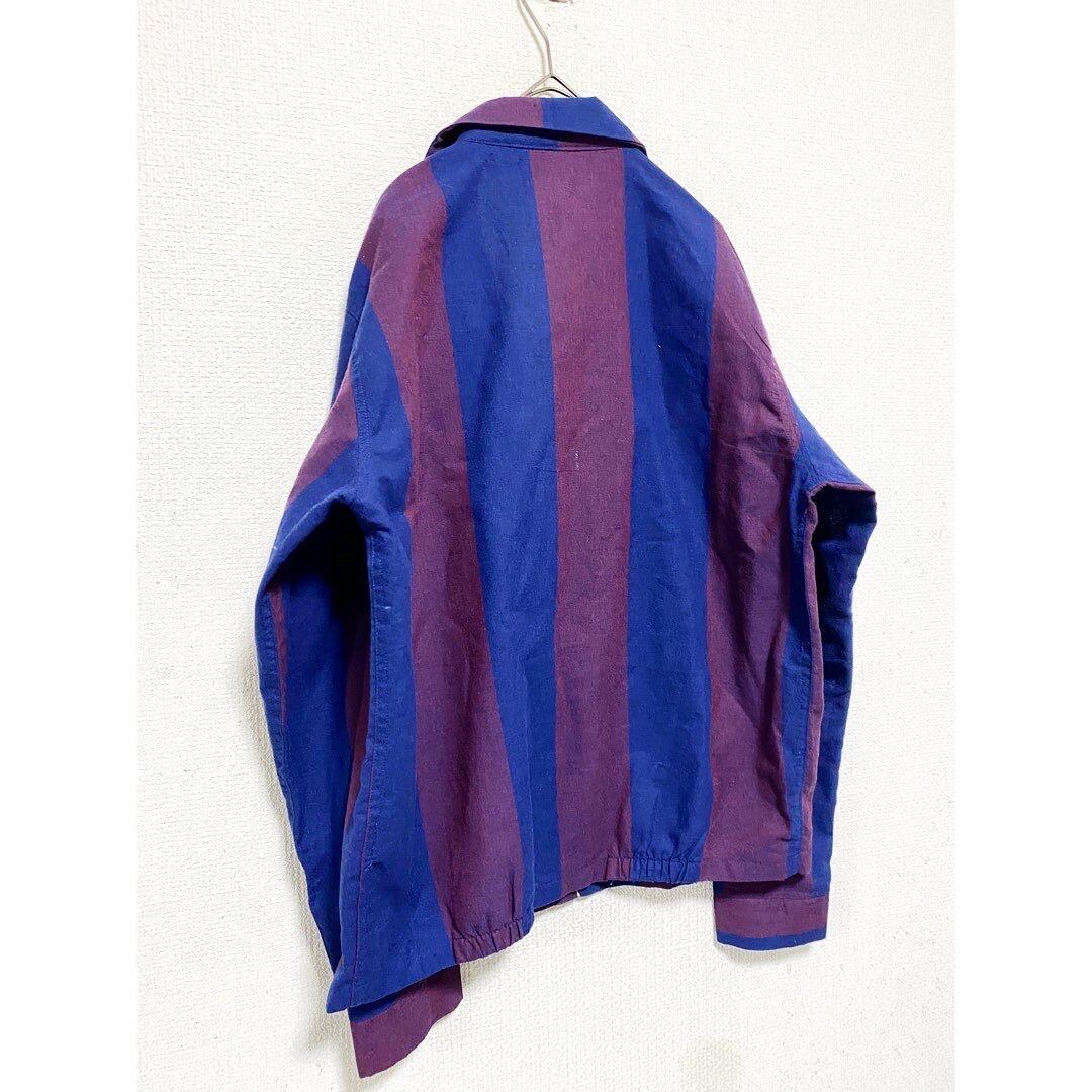オールド ワインレッドネイビーストライプコットンジャケット