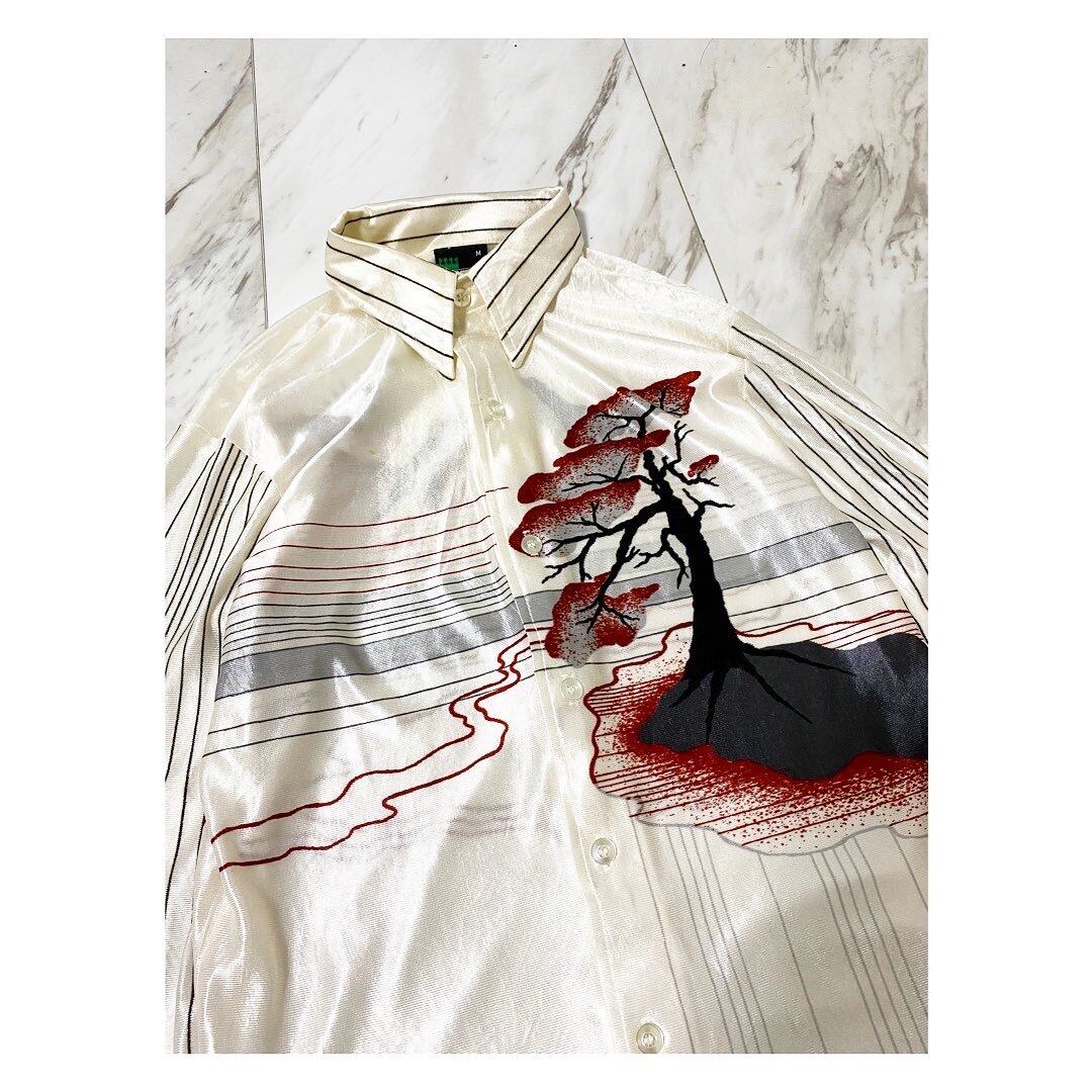 70年代らしい尖った襟にアセレート地 袖はストライプの切り替え