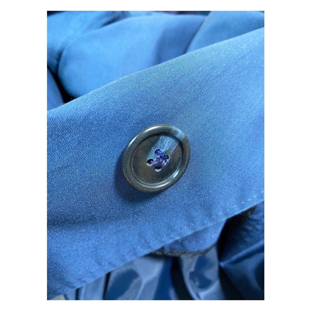 鮮やかなライトブルー 大ぶりな襟 パキッと乾いたコットン ボタンもライトブルー×ブラック