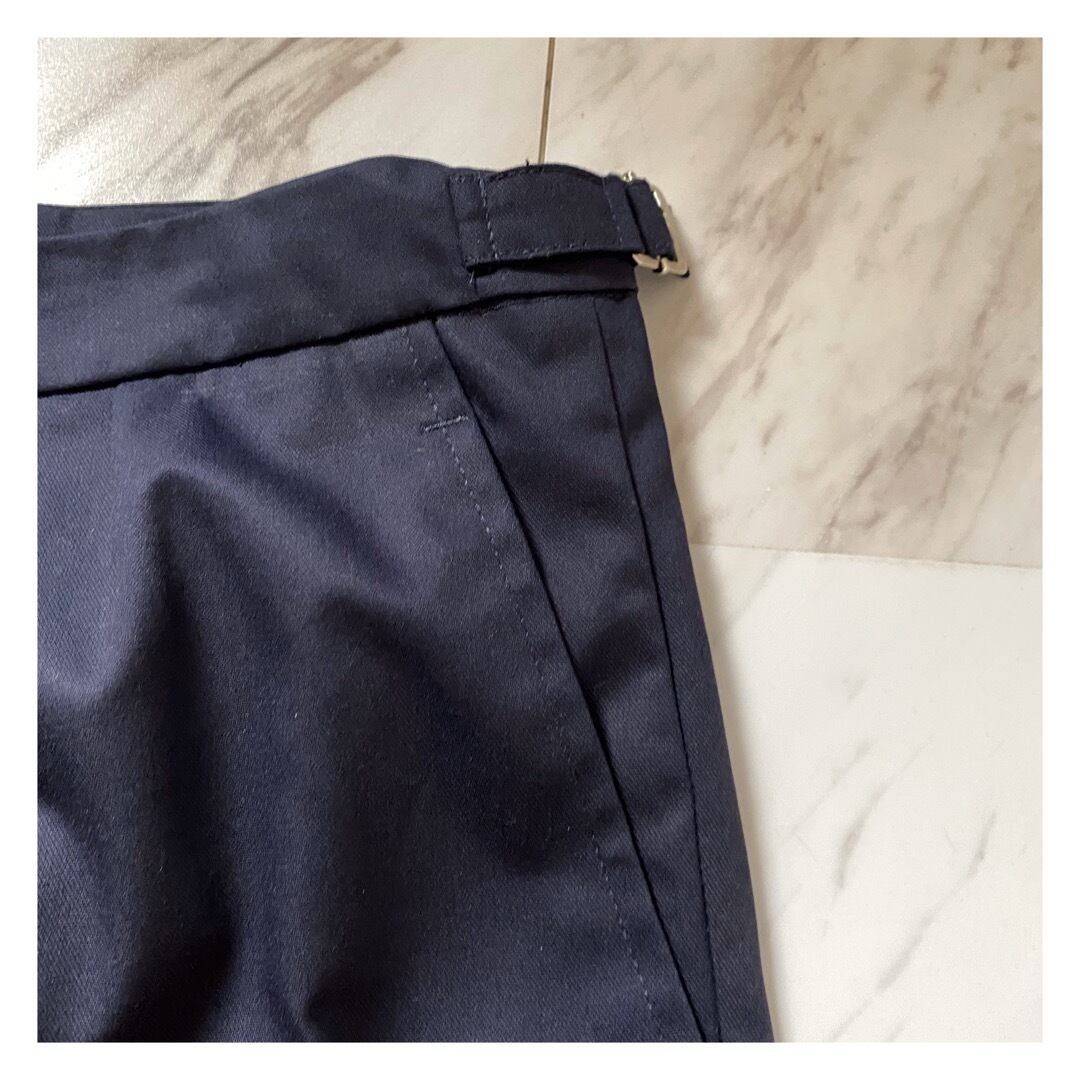 軍モノとしては珍しいネイビーカラーのチノクロスショーツ ウエスト周りにボリュームを出すタック入り 極太で短めのシルエット