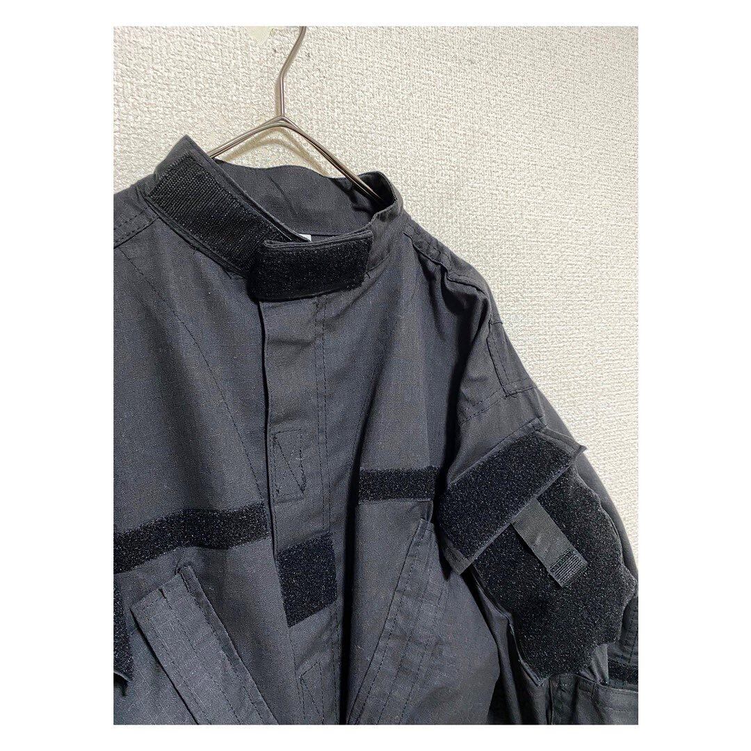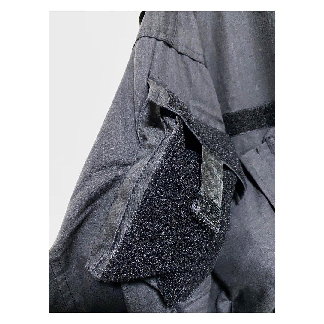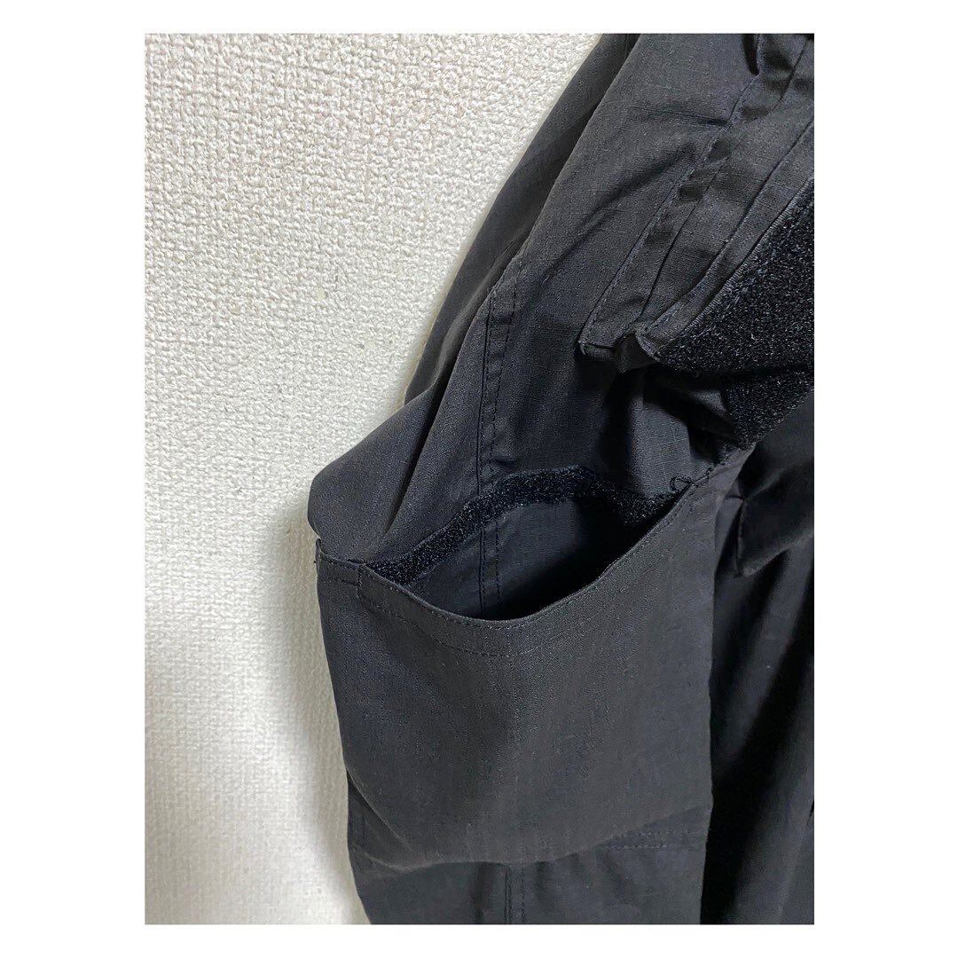 オールブラックリップストップコットンポリ デッドストック故にバキバキです 多重ポケット アーム、胸に斜めポケット、ニーにも隠しポケット バックのアクティブスリットも良し