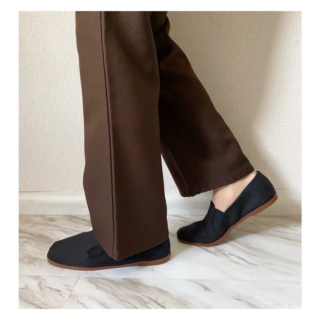 スリッポンタイプ 履き口がゴム仕様なのでかなり楽です 伸縮性の強い素材感 カンフーシューズにしては厚いソールですが、しっかり素足で歩いている感覚はあります