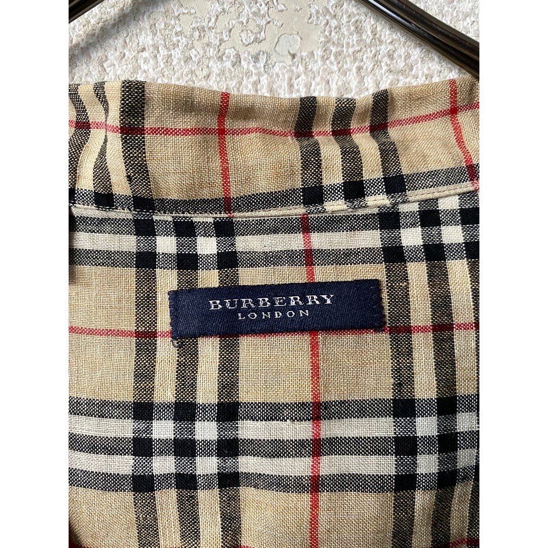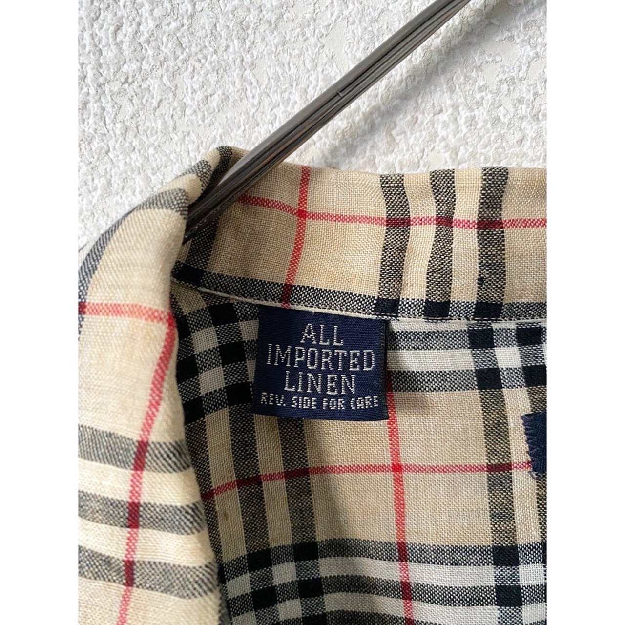 バーバリーチェック 真夏仕様の100%インポートリネン プルンプルンと風に靡きます 加えてフラップループ付きのオープンカラー 更にxlと言う珍しくオーバーサイズ目に着れるサイジング