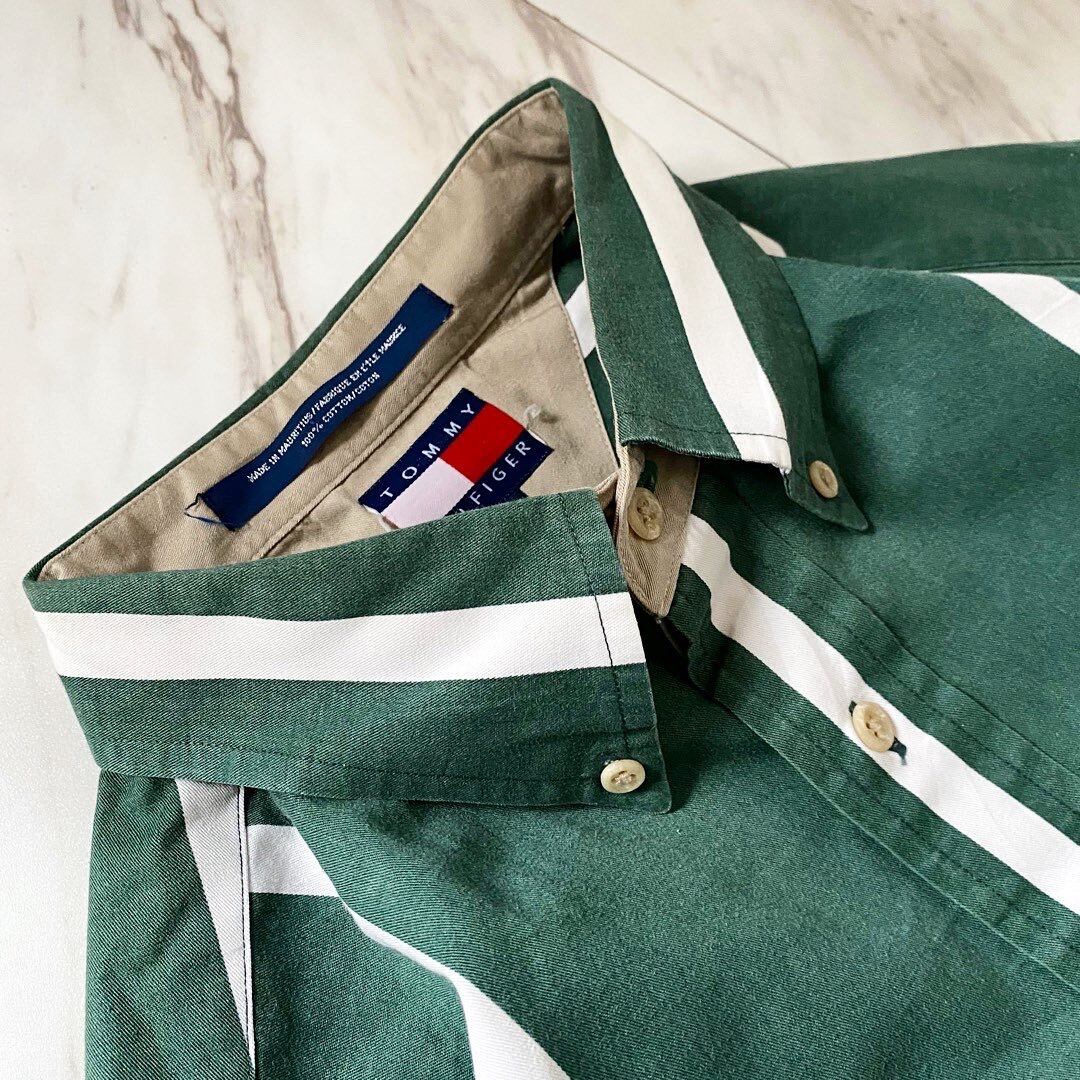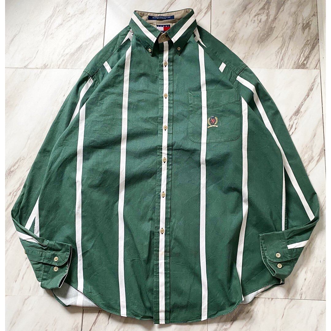 1990's トミーヒルフィガーから グリーンストライプオーバーサイズコットンシャツ