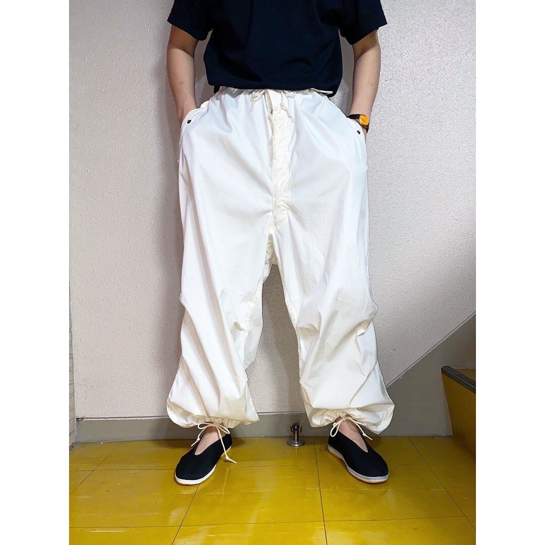 size : 表記m/r(実寸l程度)ウエスト40〜100(ドローコードで調整可能)股上58股下73総丈110.5わたり49裾幅30