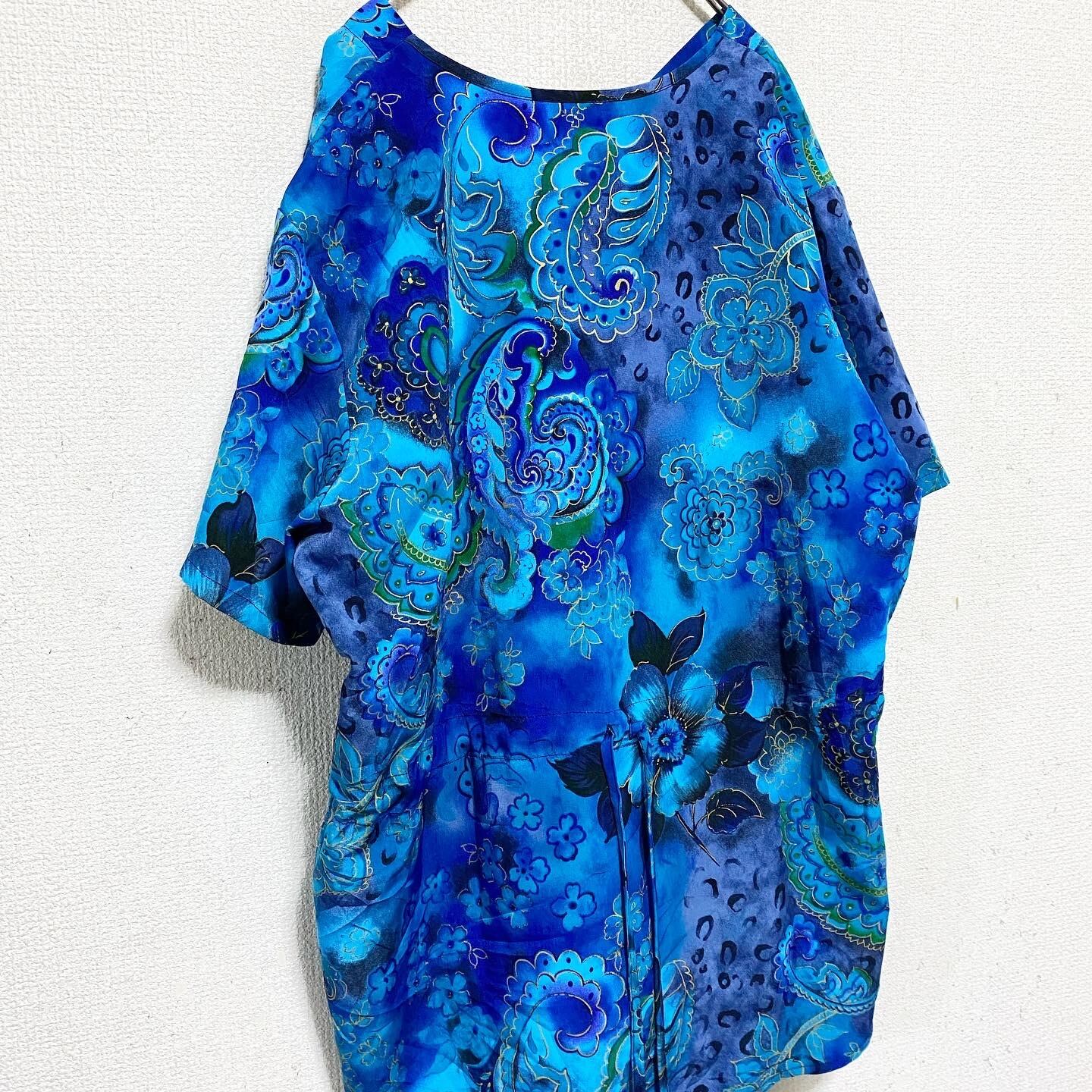 ドクターシャツで総柄と言うのが珍しい 様々なブルーが使われた花柄 イエローも良く映えます
