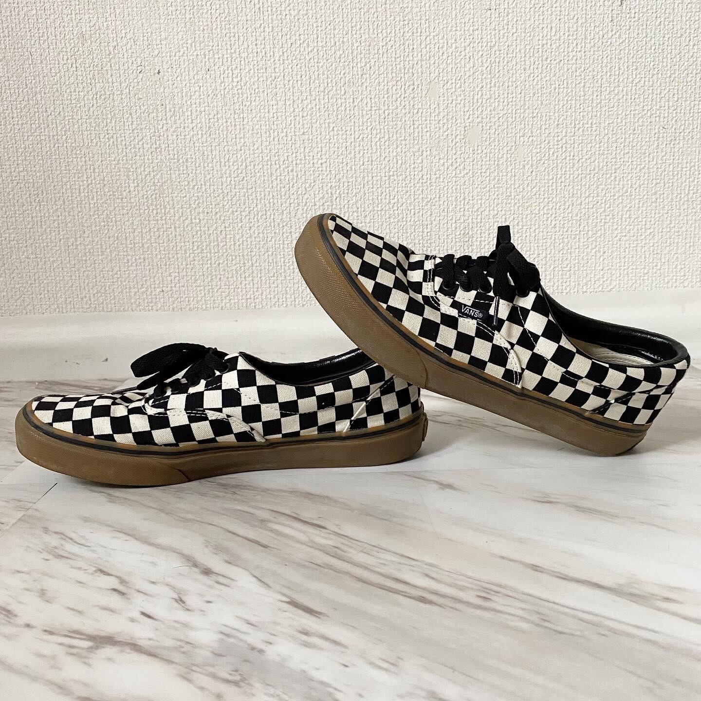 アッパーは黒白のチェック ソールは一般的なガムソールよりトーンが一つ低い色味 デザインの邪魔をしません