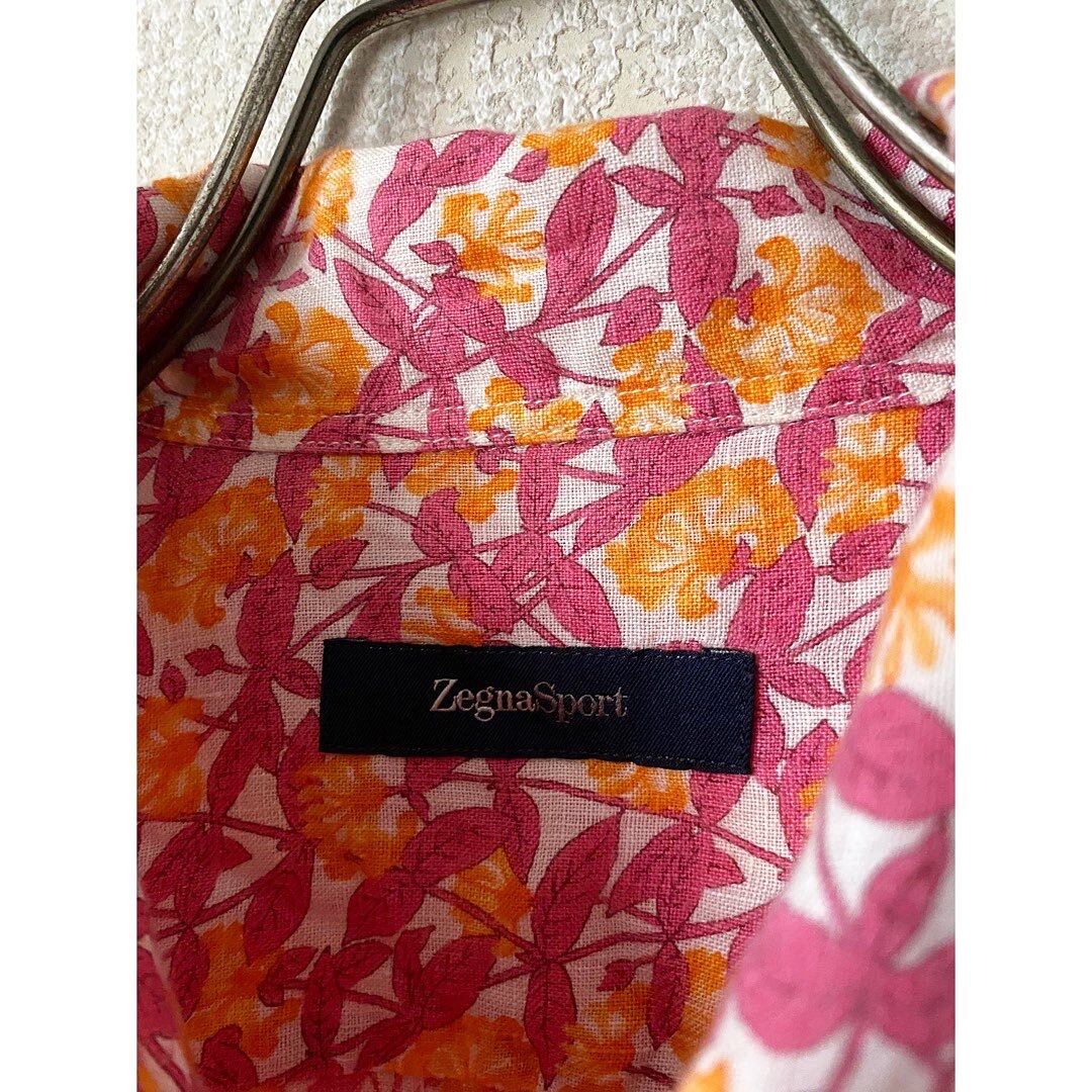 90s〜00s made in Rumania Ermenegildo Zegna sport Flax linen flower patterned s/s shirt