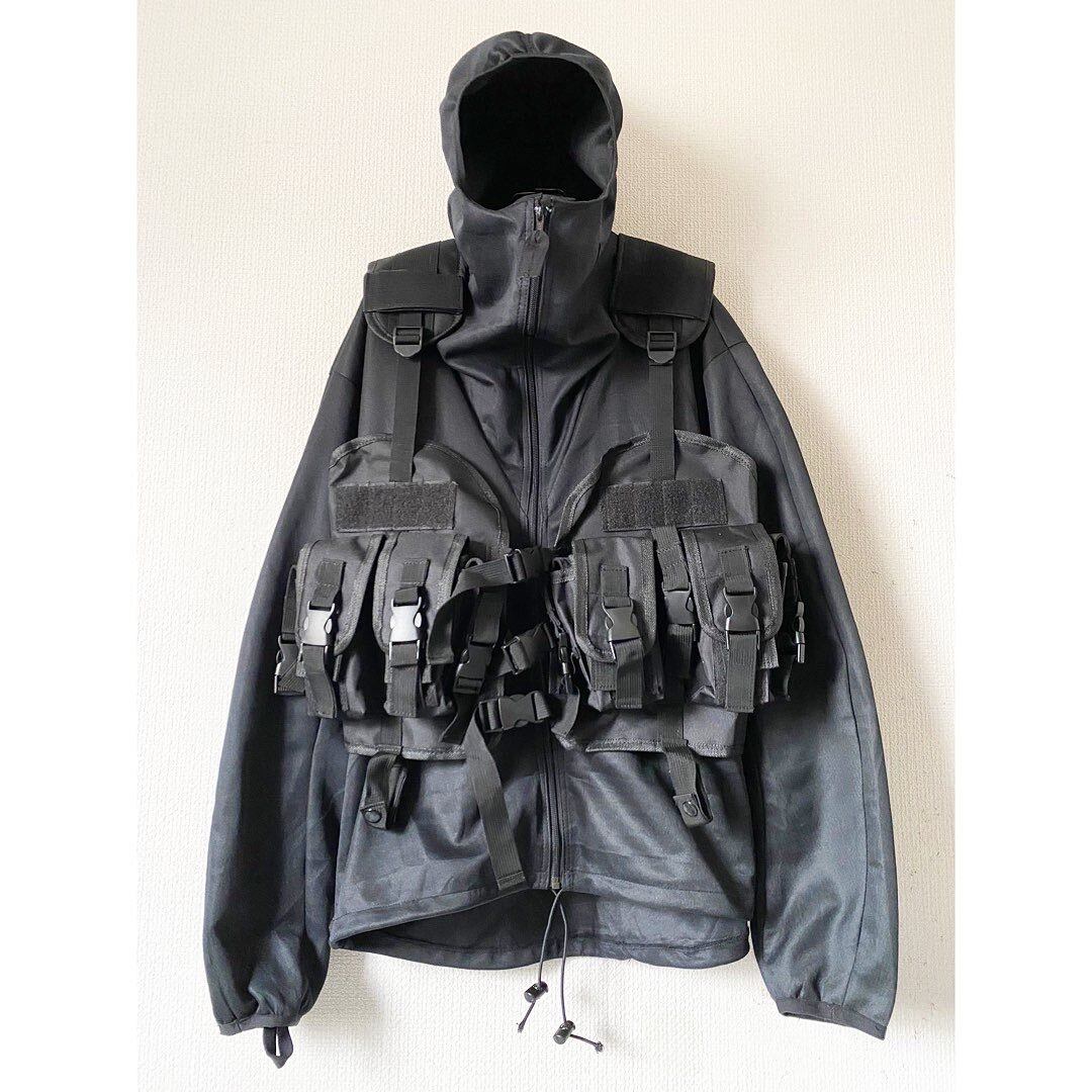 フロントに計4つのマチ付き立体ポケット バックには取り外し可能の巨大リュック 身幅着丈はアジャスターで調整可能