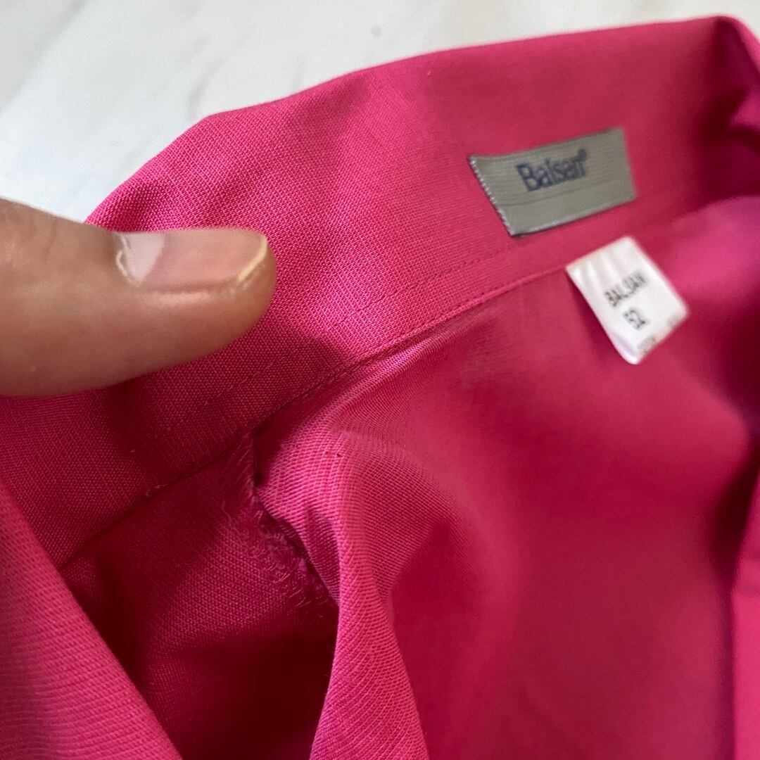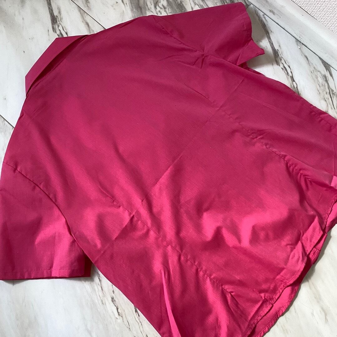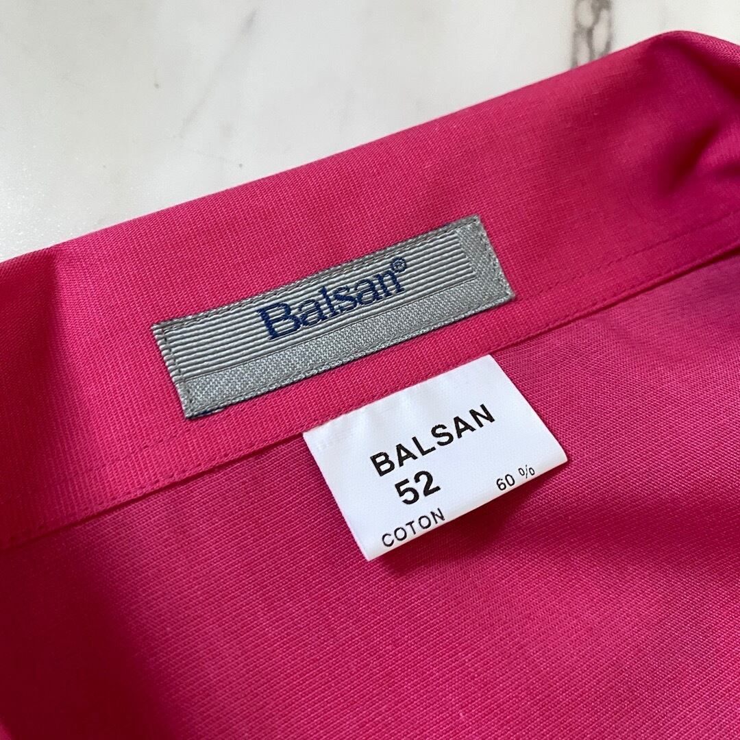 BALSANはフランス軍指定業者の大手繊維業者です レディース合わせではありますがメンズとしてもゆるっといけるサイジング オープンカラーで身幅広め着丈短めのボックスシルエット 目の覚める様なヴィヴィッドピンク 嬉しい胸ポケ付き ボタンも同系色のセルボタン パキパキっと乾いたポリコットン