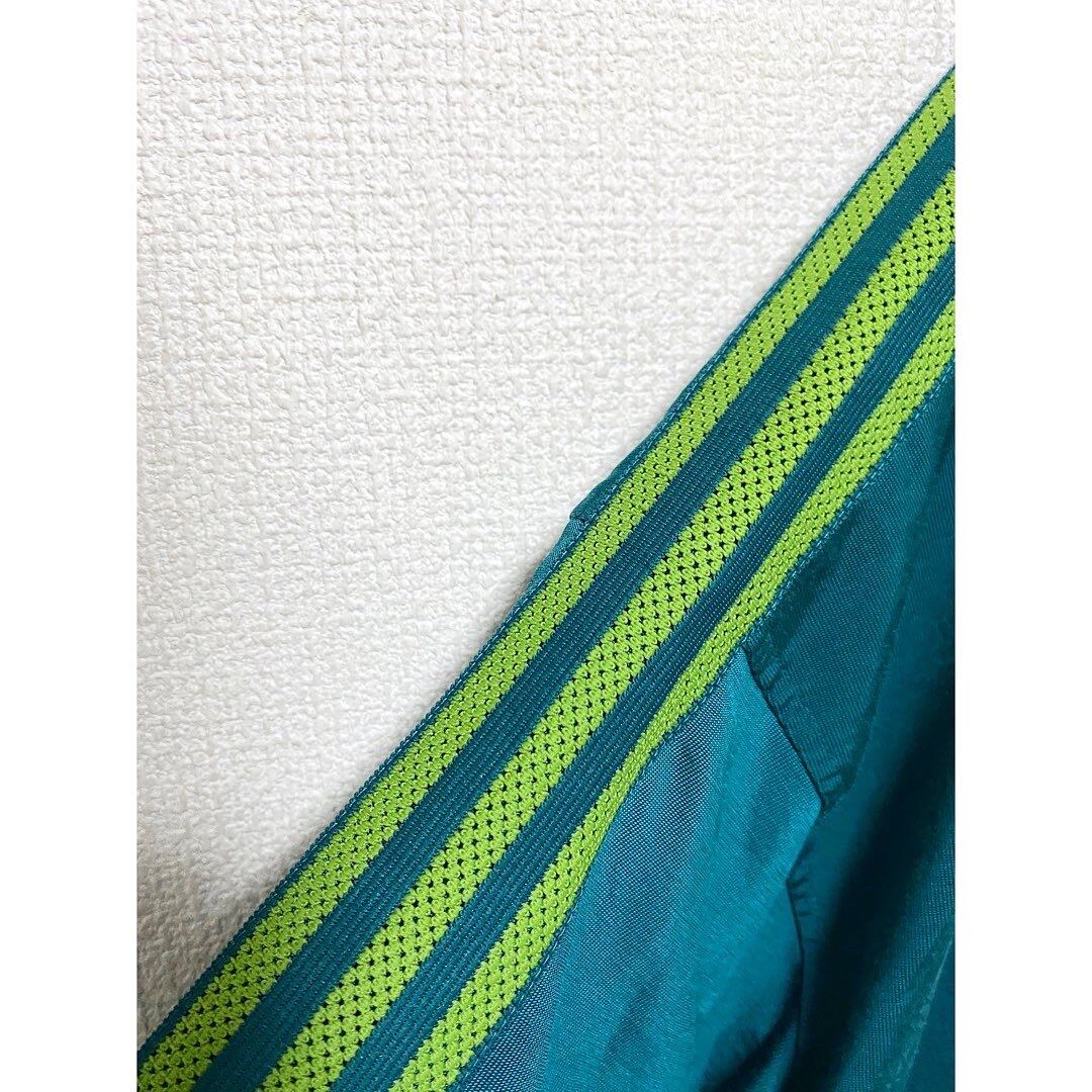 鮮やかな青みがかったエメラルドグリーン ライトグリーンのロゴ3本ラインも良し 夏には嬉しい速乾性のあるポリ地