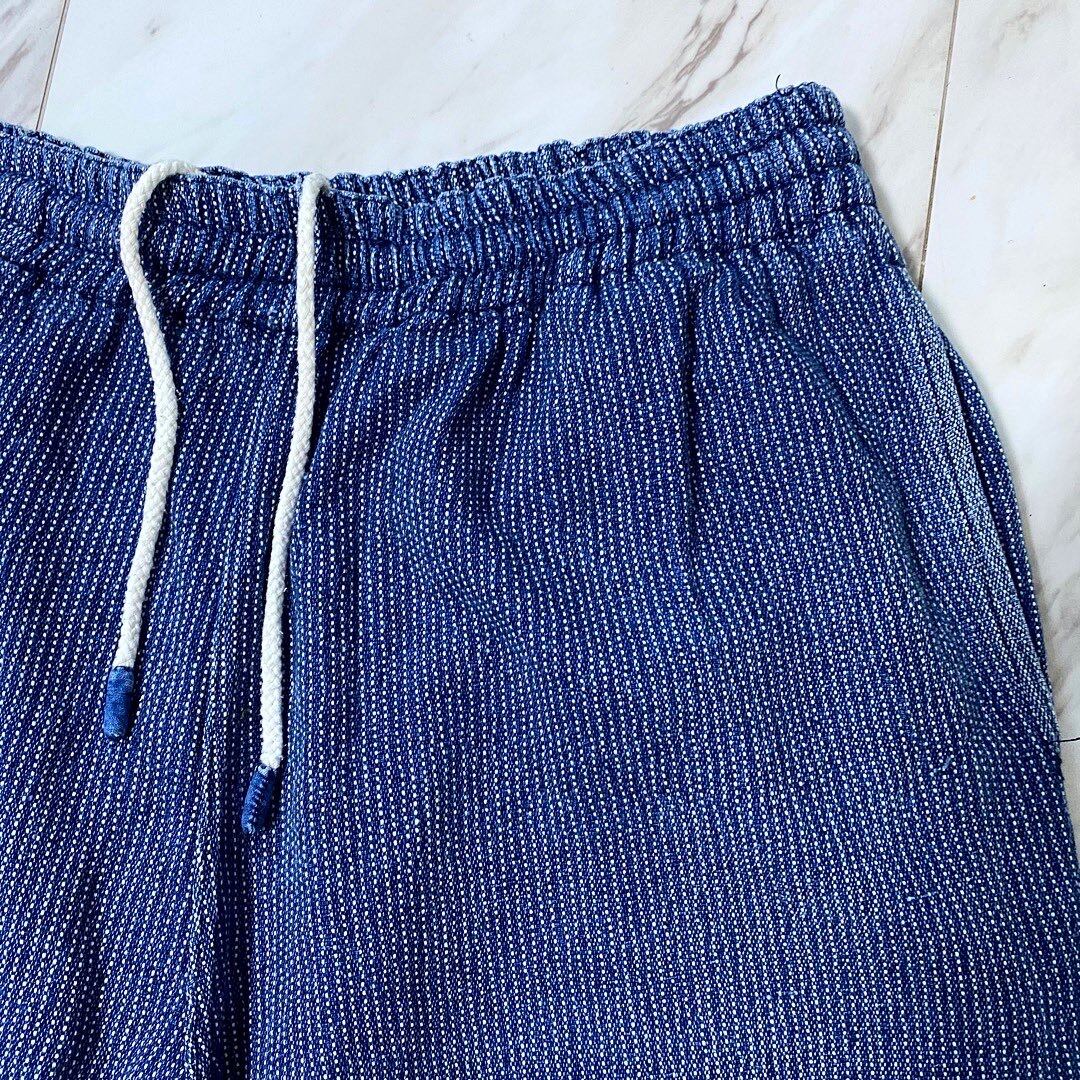 ガイジンメイドと言えば"藍染" ジャパニーズヴィンテージのモンペのような素材感 ズドンと太め ウエストはドローストリング仕様 ドットストライプ
