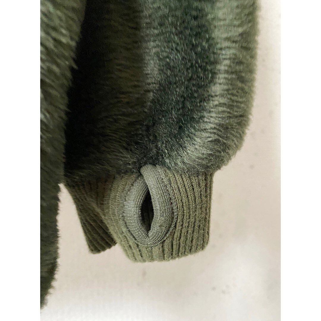 超毛足長め ヴィンテージモヘアカーディガンの様な毛足 深いモスグリーン ハイネック 斜めに掛かったブラックジップ