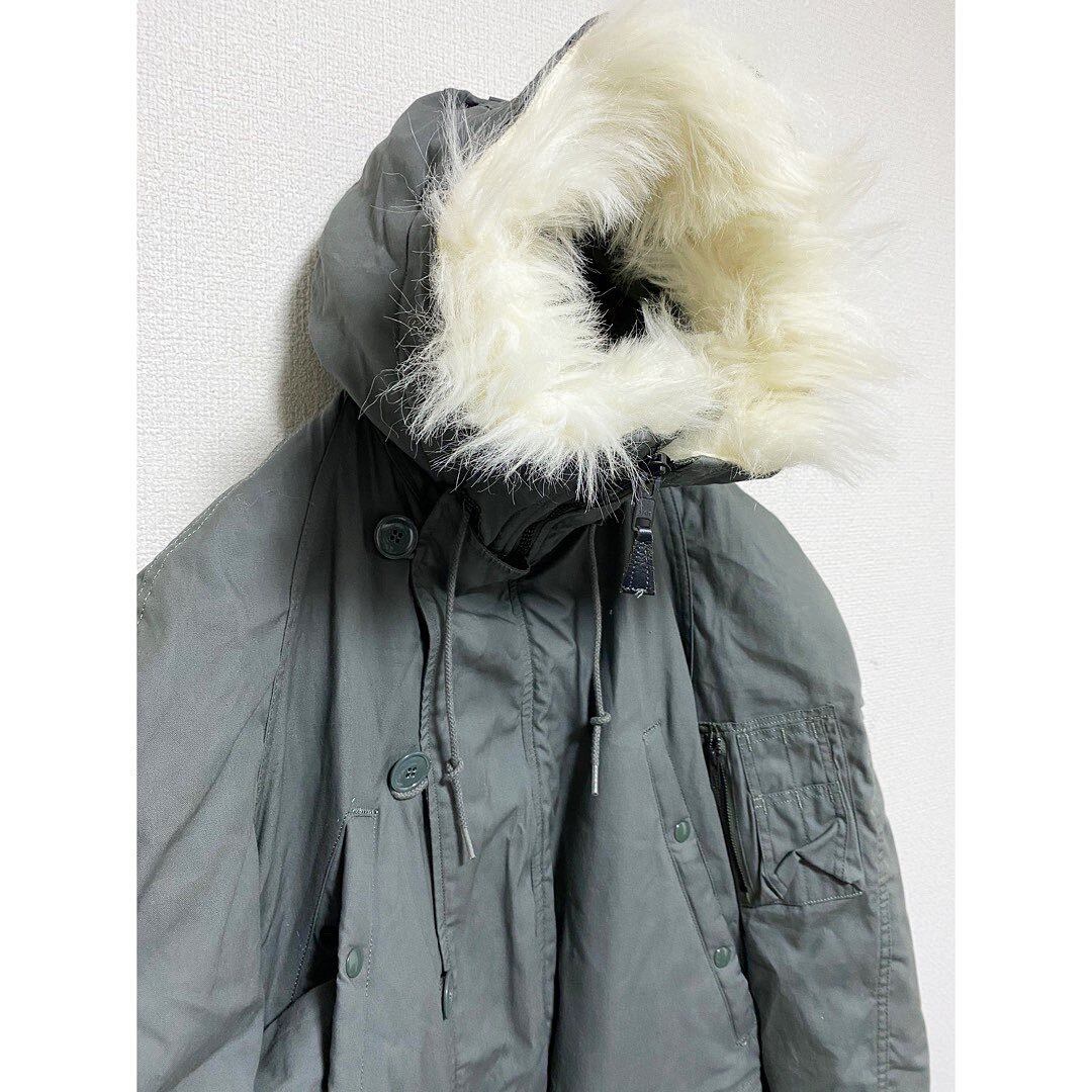 usafお馴染みプロッパー社製 オリーブにブルーを足した様なセージグリーンに真っ白のファーが映えます 近年物だとファーがこの色味になりますが、個人的に一番好きなパターン フード内はボア仕様 ウエストコード付きボディーラインを出せます 状態も抜群に良し