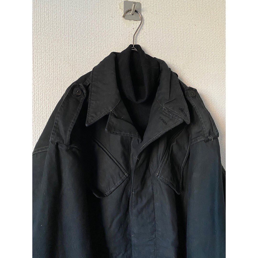 ストック品を贅沢にブラックカラーに変更させた1着 艶と厚みのあるコットン生地との相性が抜群の仕様 袖口ダブルストラップ、跳ね上げ特大胸フラップ、そして重厚な生地の取り方などデザインの宝庫です