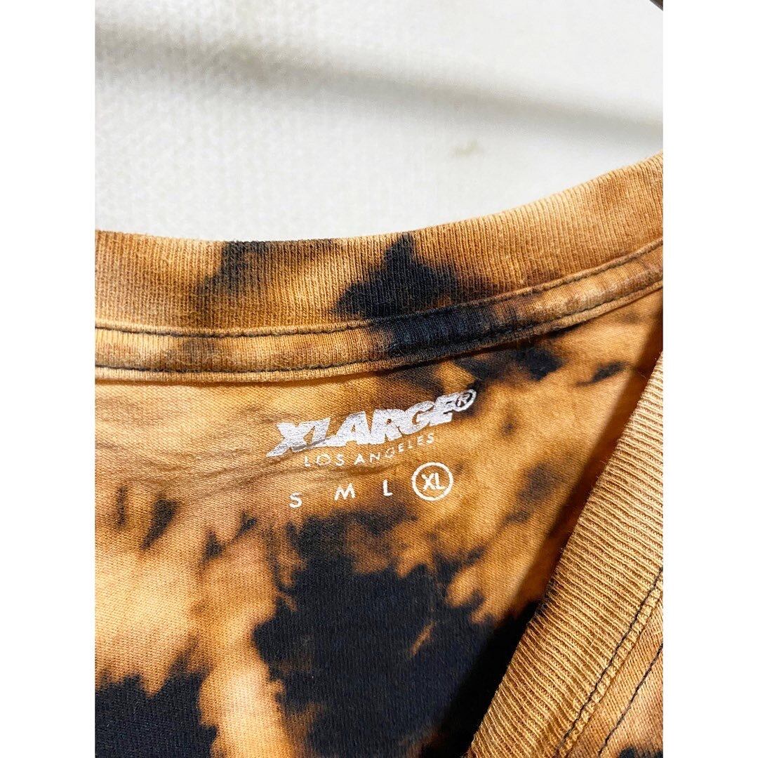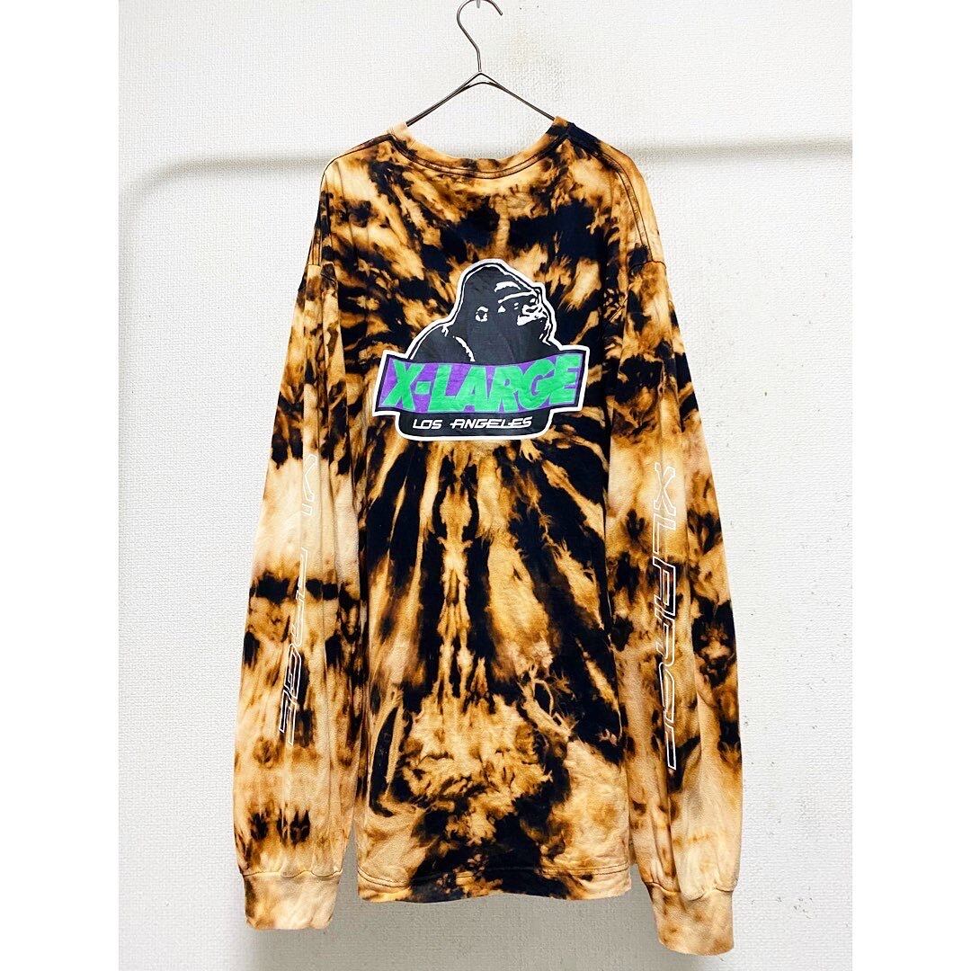 エキストララージのロンティーをボディーに贅沢にブリーチ 渦を巻く様なタイダイパターン ブラックとオレンジのコントラストがとても良い