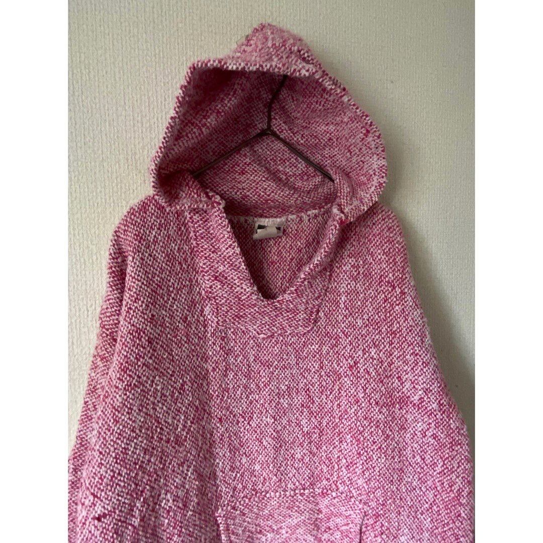 本場メキシコ製 メキシカンパーカーとしては珍しい無地パターン ピンク×ホワイトの高配色 ふわっとしたコットンアクリルボディー 紙タグ