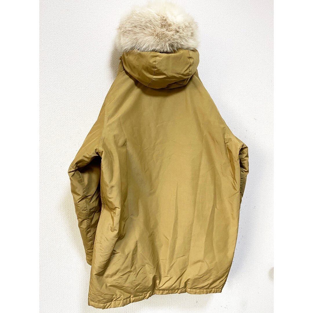 恐らく70年代のに次ぐセカンドかと 初めて見たタグです アークティックパーカーに関しては米国製の古い物だとファーがスカスカになっている物がほとんどですが、こちらはモフモフの新品に近い量の毛を保っています 加えてベージュが日焼けや色抜けで薄いベージュの個体が多い中、こちらは濃い少し茶色がかった濃いベージュ 稀に見るコンディションです サイズも大きすぎる個体が多い中こちらは日本サイズのL相当 全てが揃っています