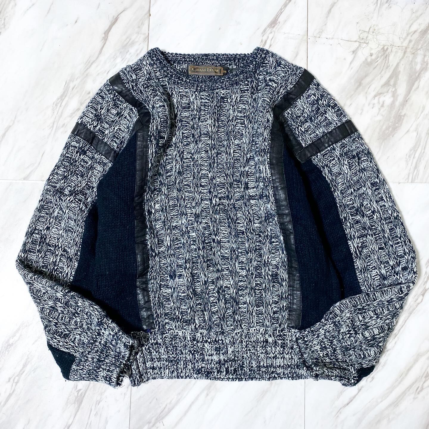 90s acrylic leather swiching knitting sweater