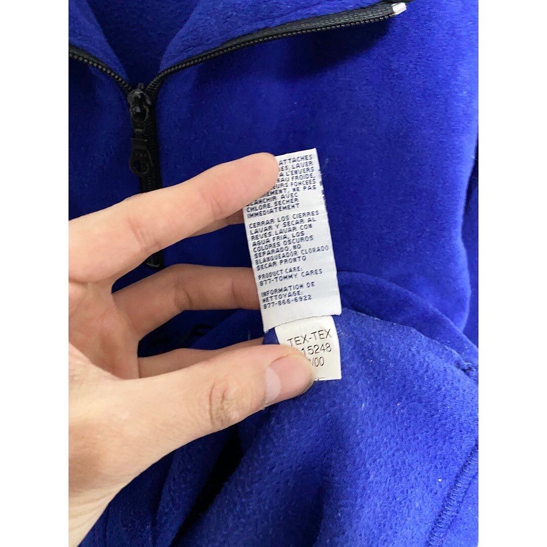 個人的に好きなトミーのアウトドアライン 鮮やかなブルーにアーム部分はブラックナイロンへの切り替え お腹には刺繍デカロゴ ハーフジップのプルオーバータイプ